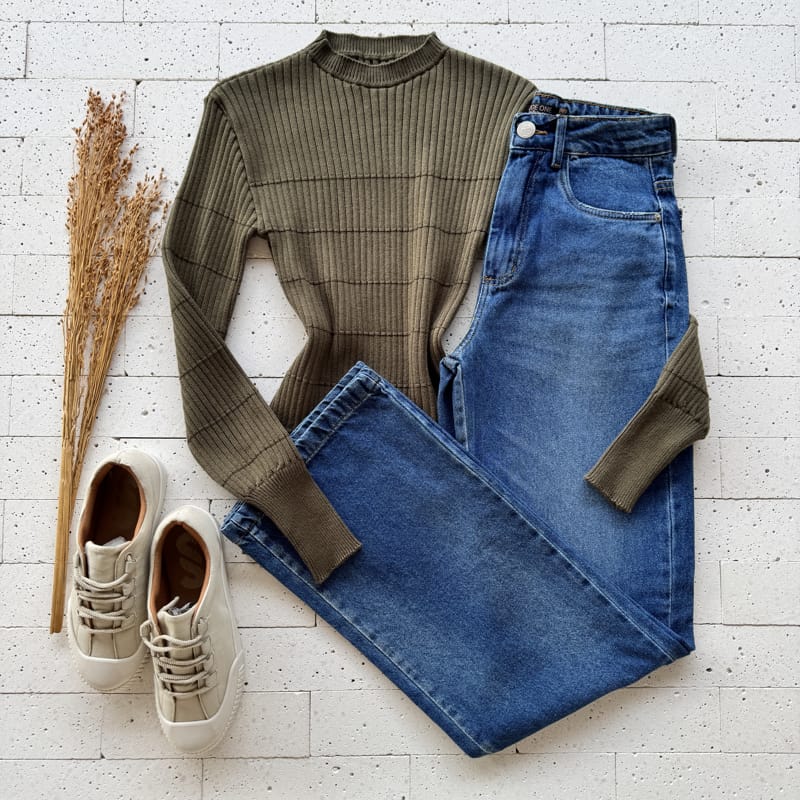 Como Usar a BLUSA TRICO MODAL MANGA LONGA DETALHADA VERDE OLIVA