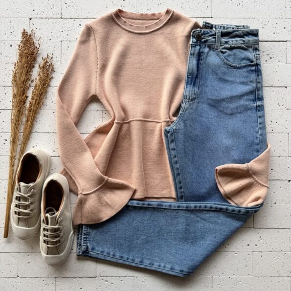 BLUSA TRICO MODAL PEPLUM COM MANGA FLARE BEGE – Elegância e Feminilidade para Todas as Ocasiões