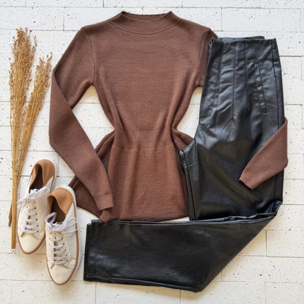 BLUSA TRICO MODAL PEPLUM MANGA LONGA MARROM – Elegância e Conforto na Medida Certa