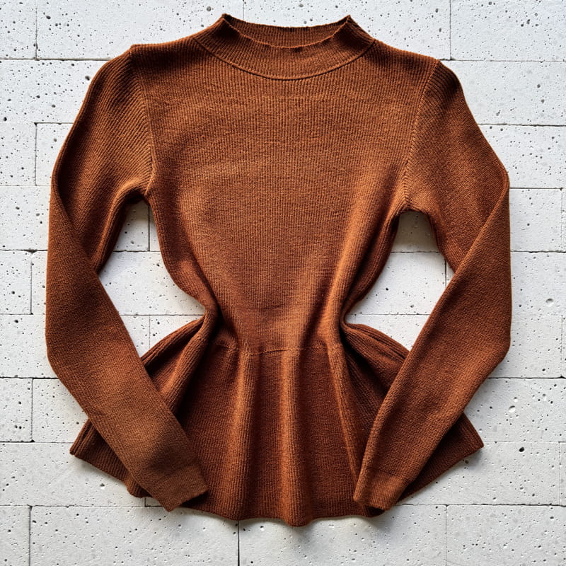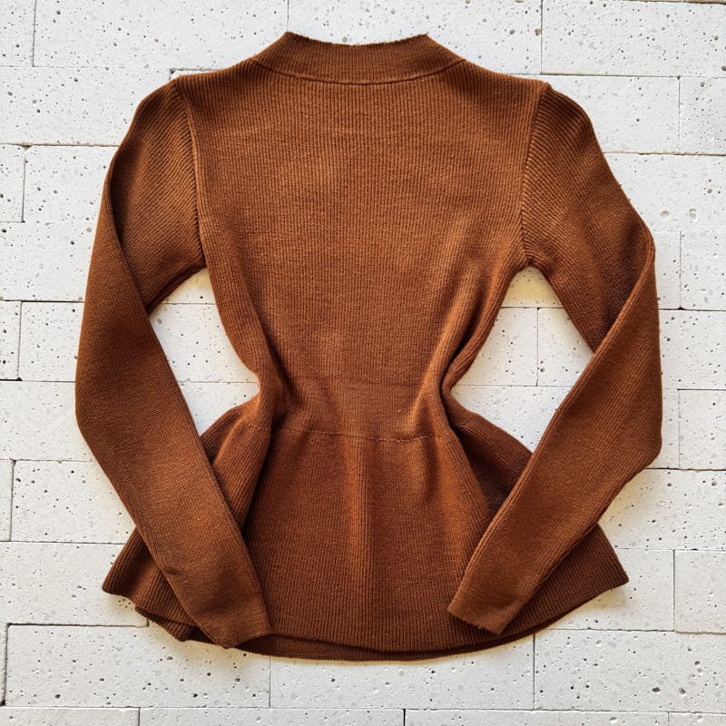 BLUSA TRICO MODAL PEPLUM MANGA LONGA TELHA – Modelagem Acinturada com Conforto e Estilo
