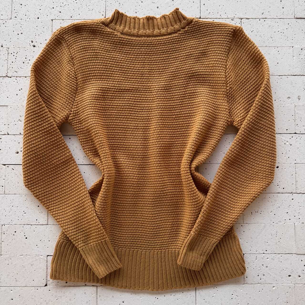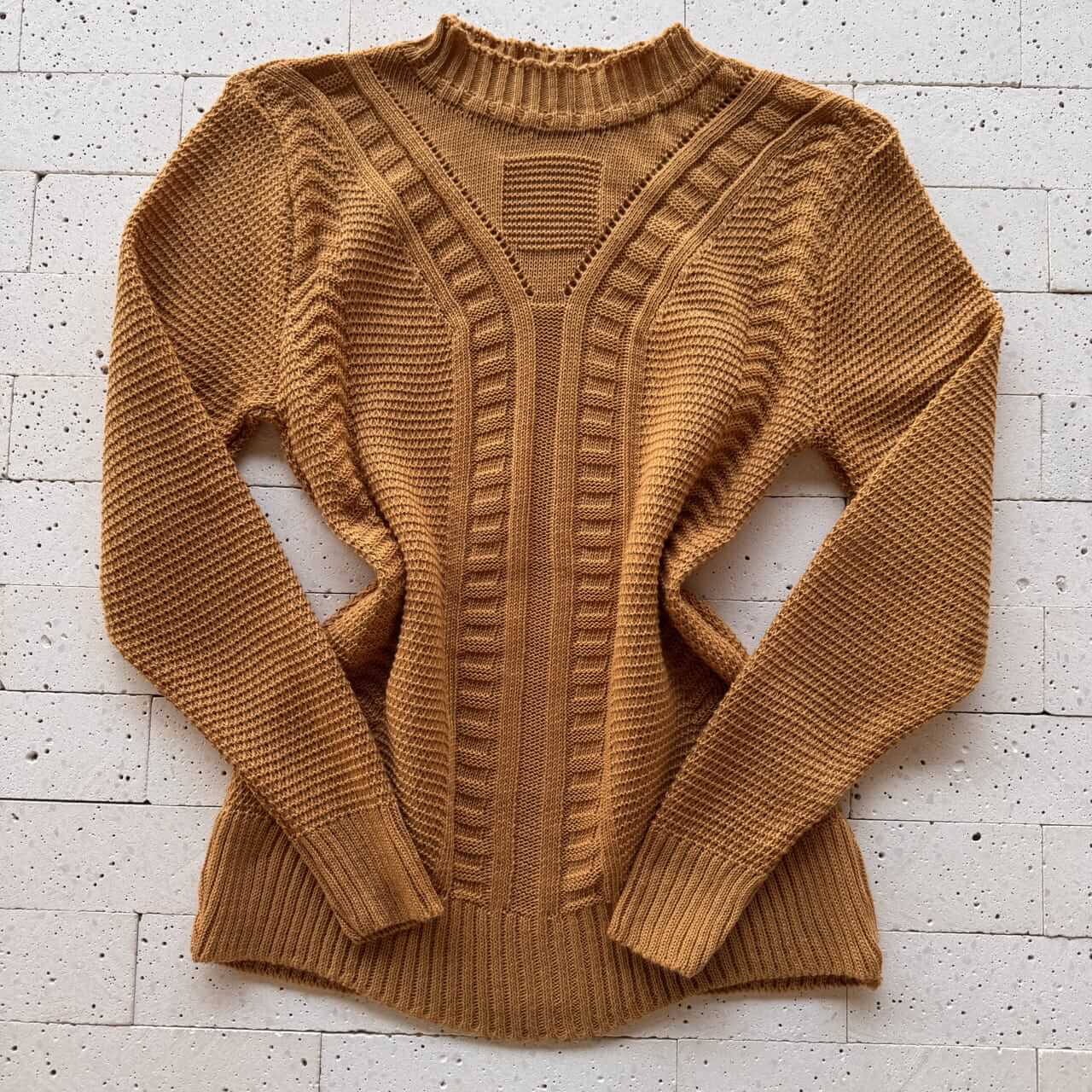 BLUSA TRICO PONTO DETALHADO E TRAMA FRONTAL CARAMELO