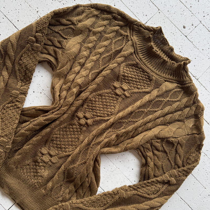 A Blusa Tricô Trama e Bolhas Marrom é uma peça charmosa e cheia de personalidade, ideal para compor looks estilosos nos dias mais frescos. Com uma trama elaborada que combina torções, desenhos geométricos e detalhes em alto relevo estilo “bolhas”, essa blusa traz volume e textura únicos. Possui gola levemente alta com acabamento canelado, punhos e barra ajustados, além de modelagem que se adapta bem ao corpo graças à elasticidade do tricô. O efeito visual nas mangas longas e no centro da peça confere um toque artesanal sofisticado, perfeito para elevar qualquer produção.