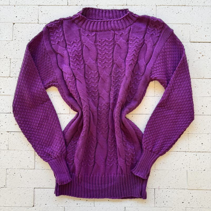 BLUSA TRICO TRAMA TRANÇADA MANGA LONGA MAGENTA – Design rico em textura e caimento confortável