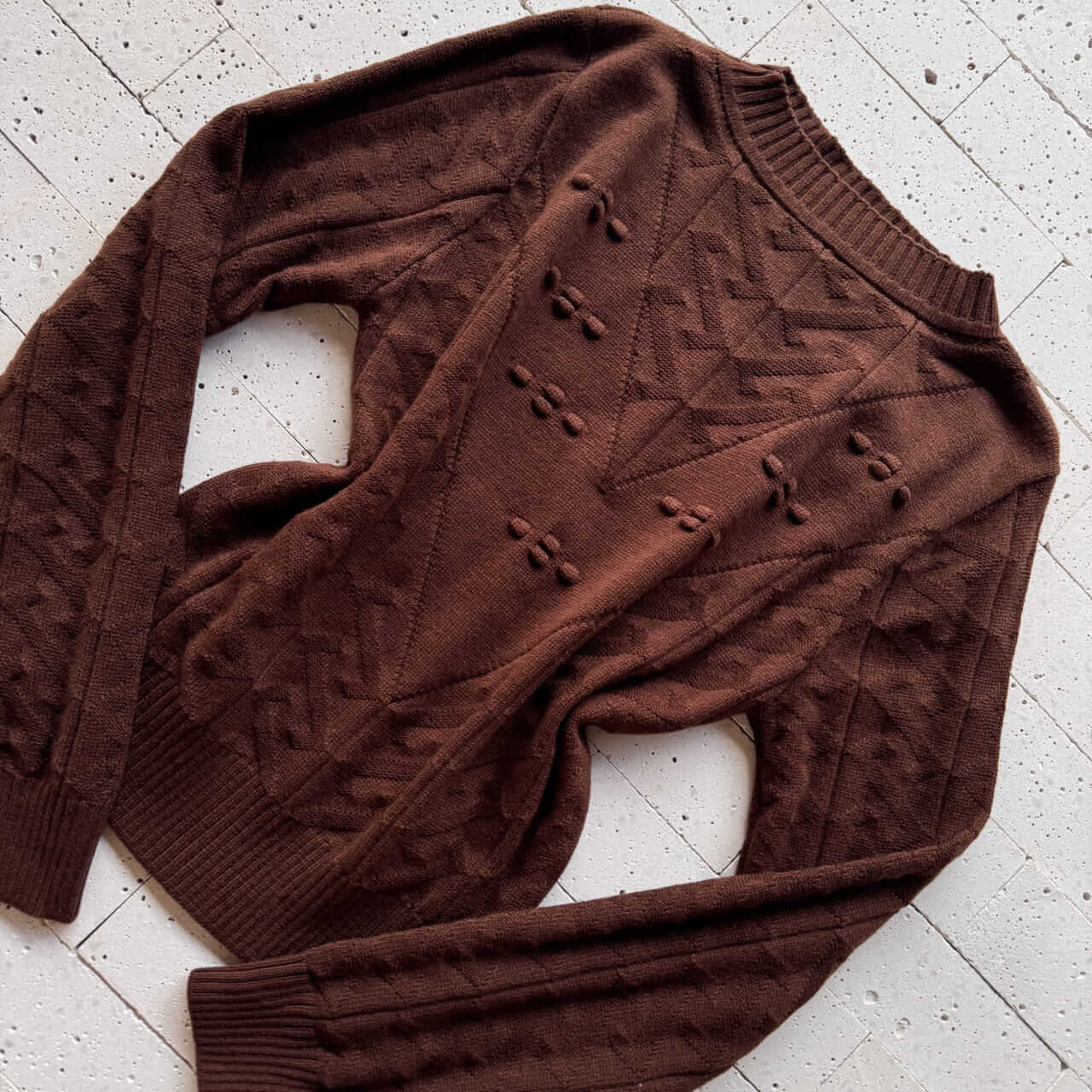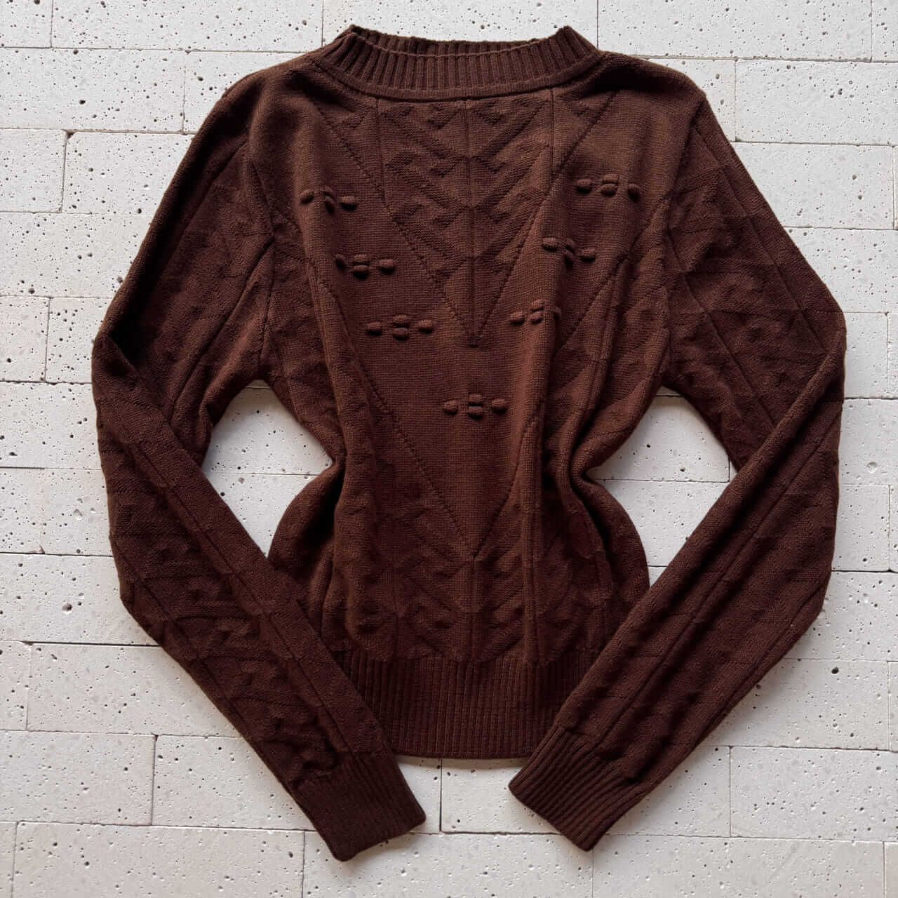 BLUSA TRICO ZIGZAG DETALHE BOLHAS CAFÉ