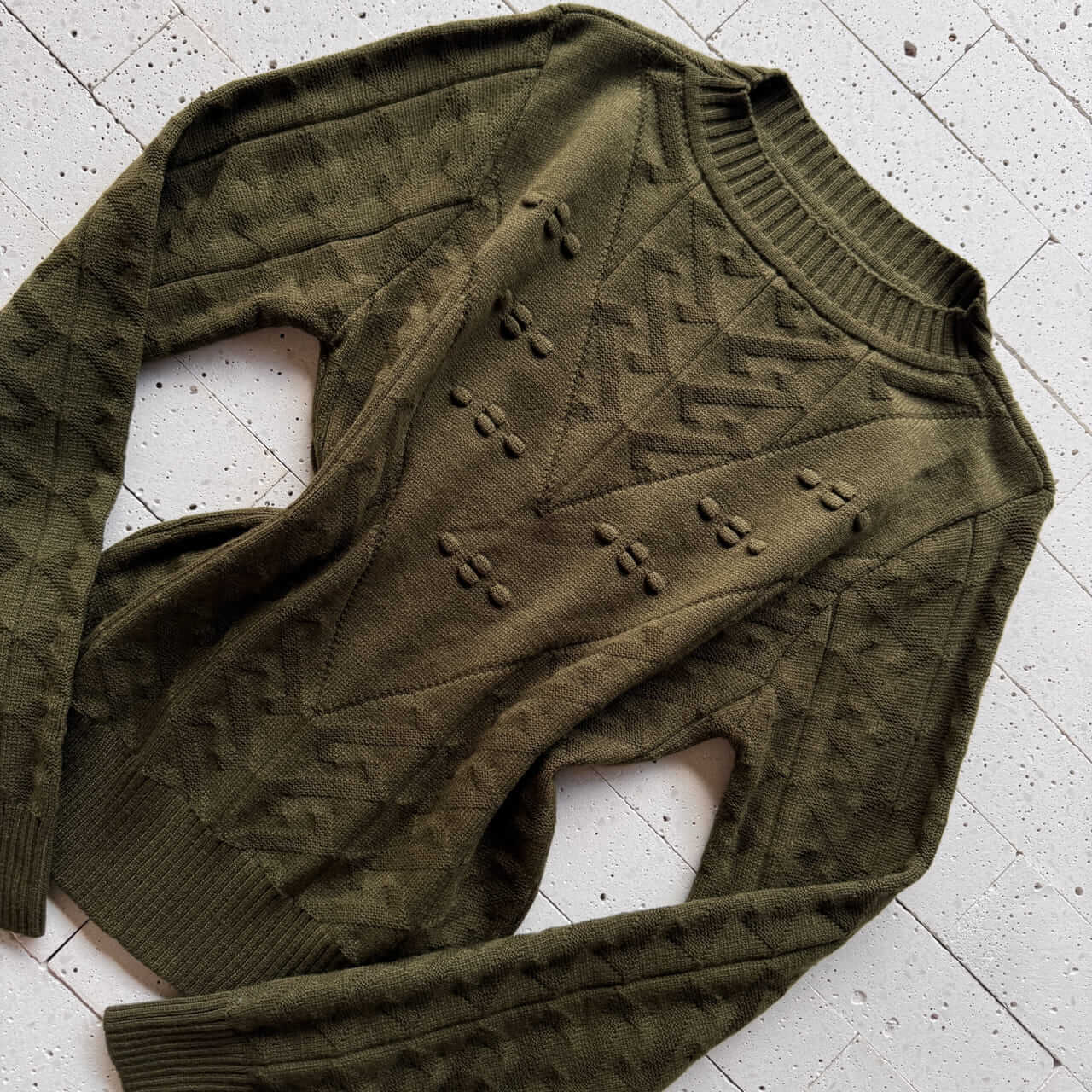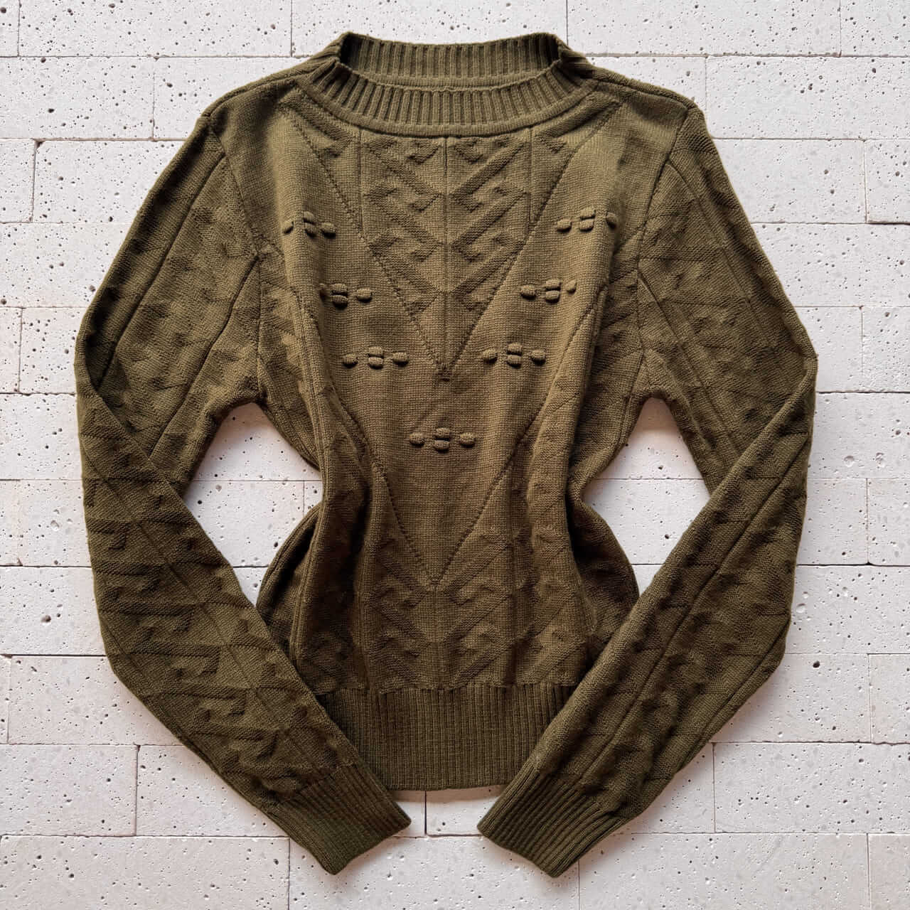 BLUSA TRICO ZIGZAG DETALHE BOLHAS VERDE OLIVA