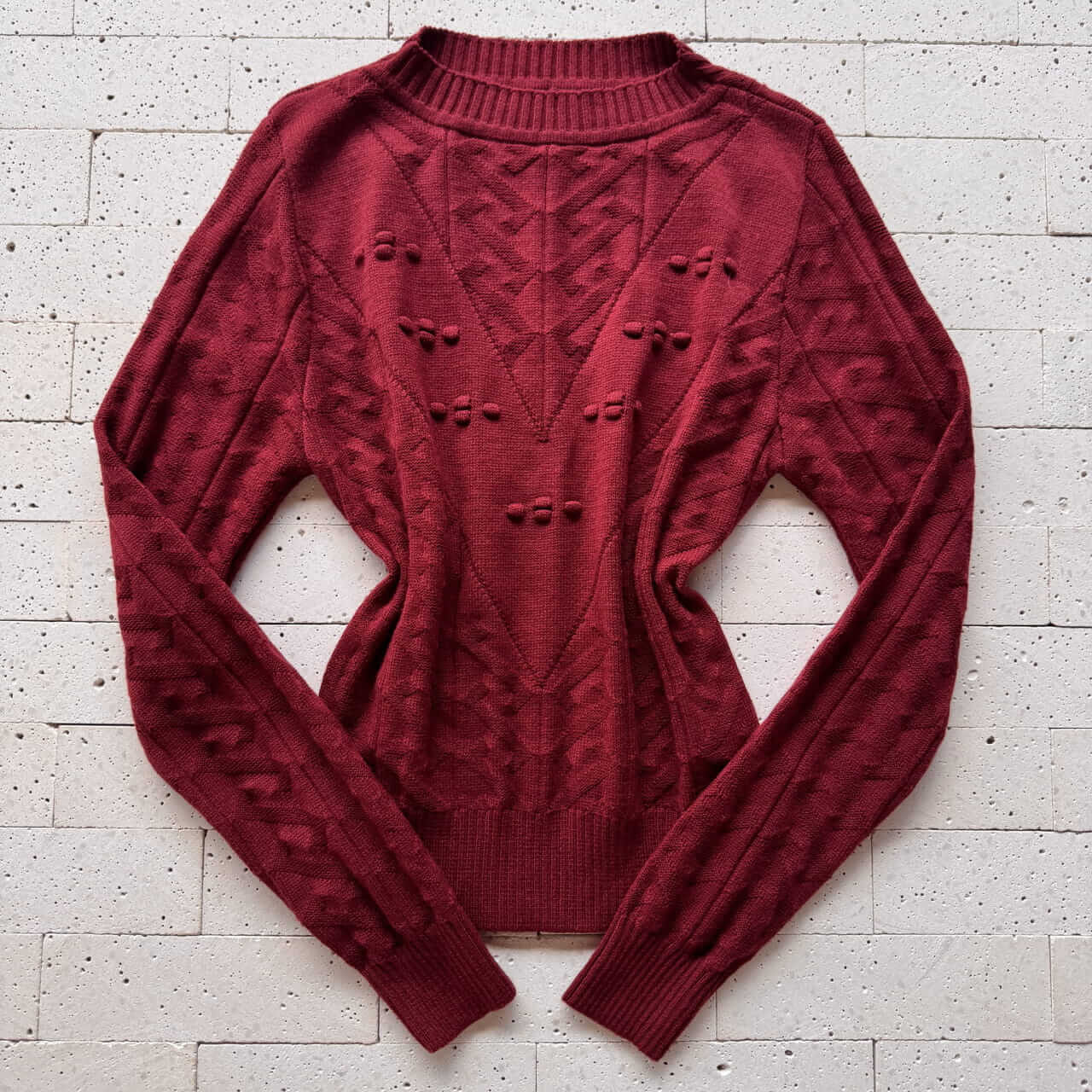 BLUSA TRICO ZIGZAG DETALHE BOLHAS VINHO