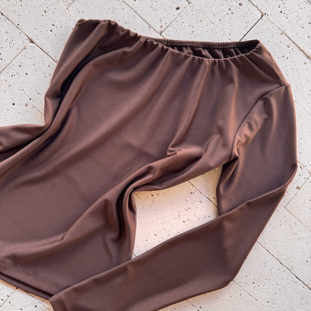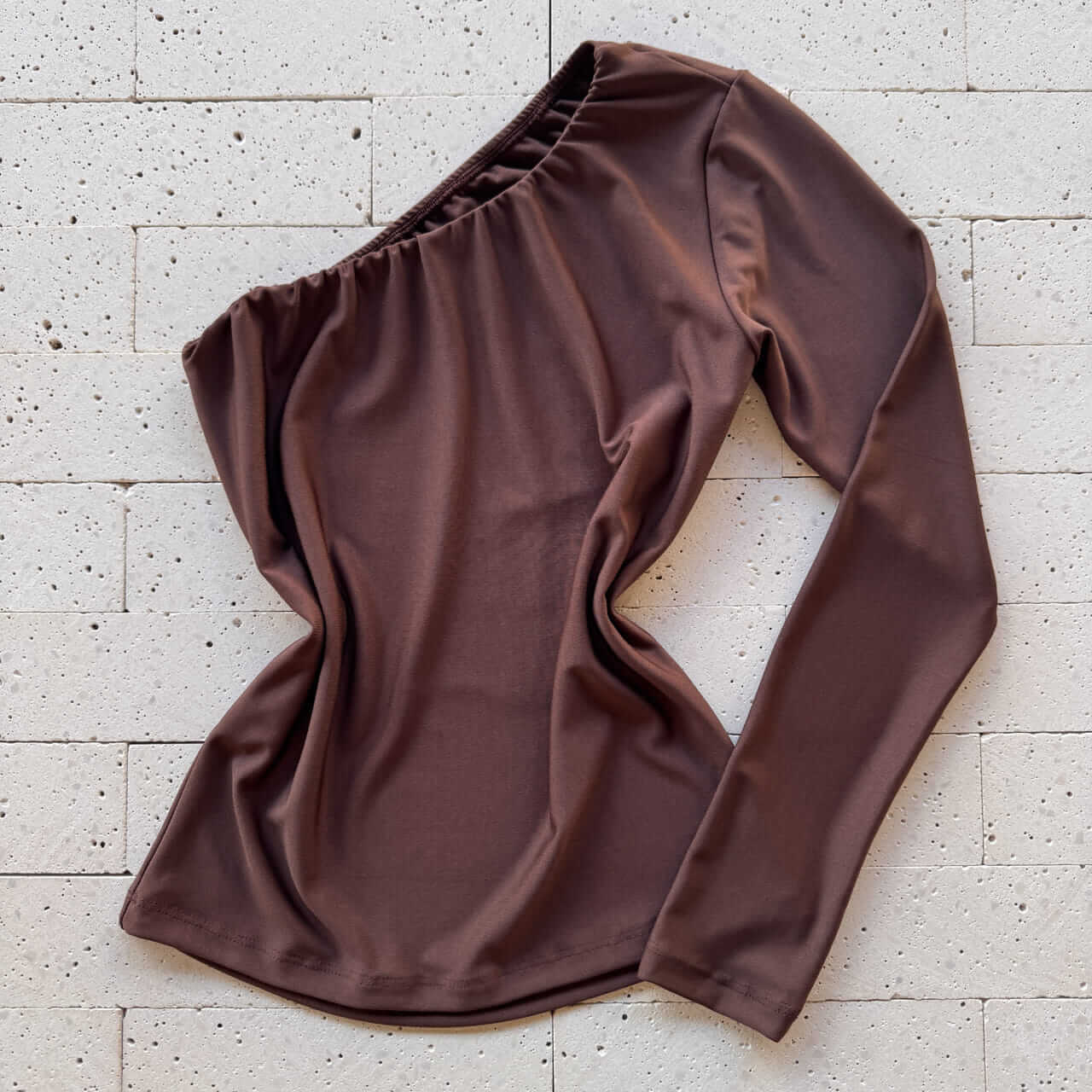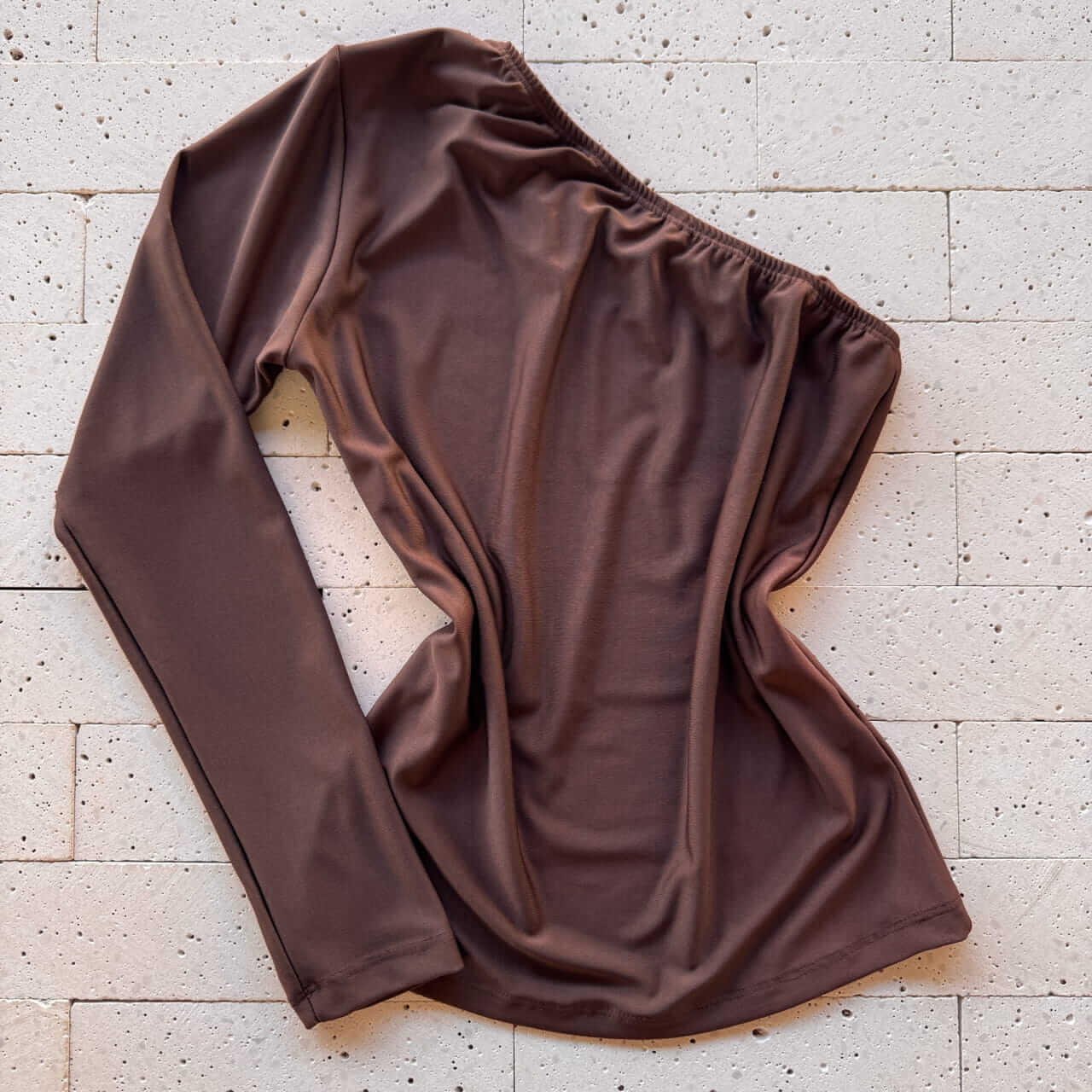 BLUSA UM OMBRO SÓ MANGA LONGA CAFÉ