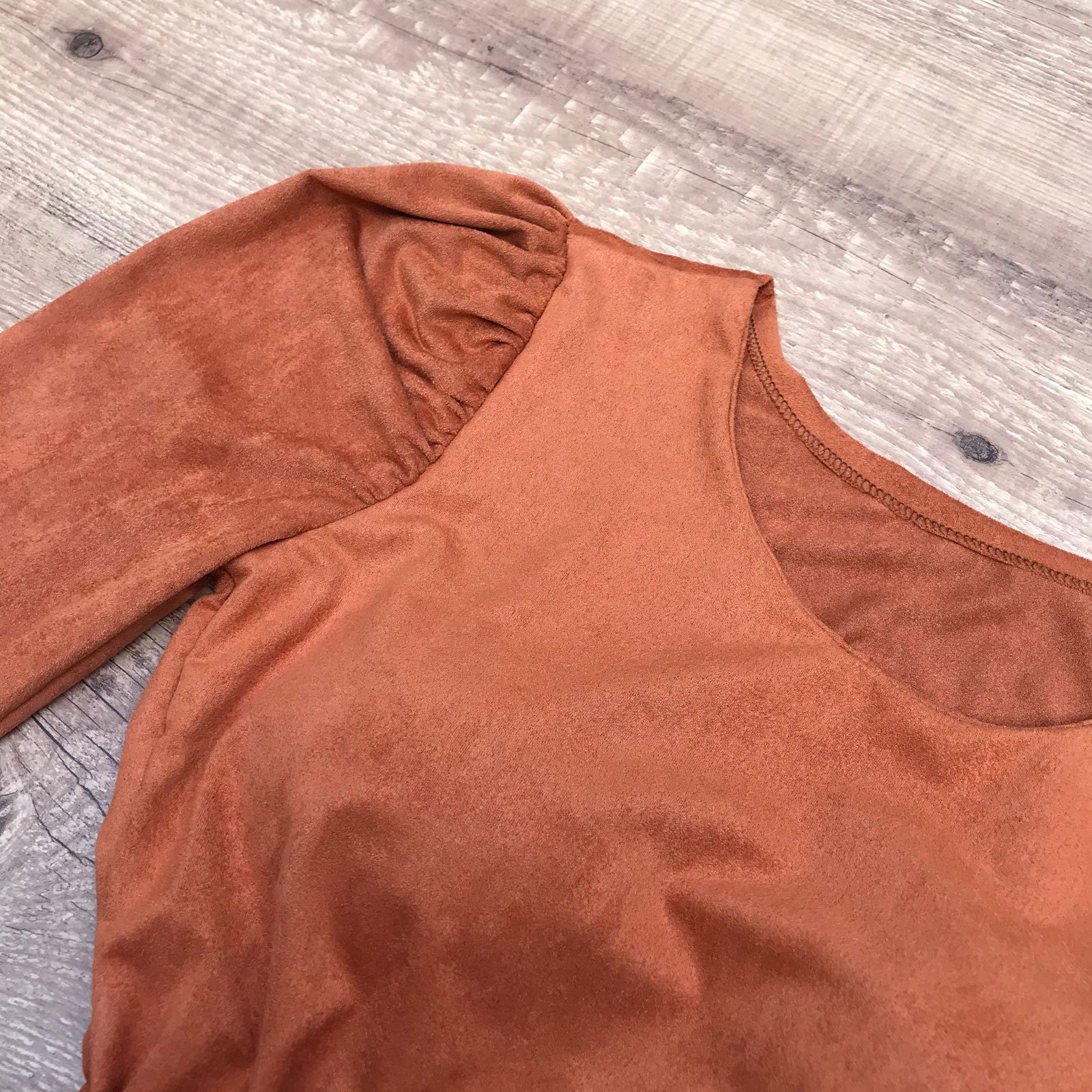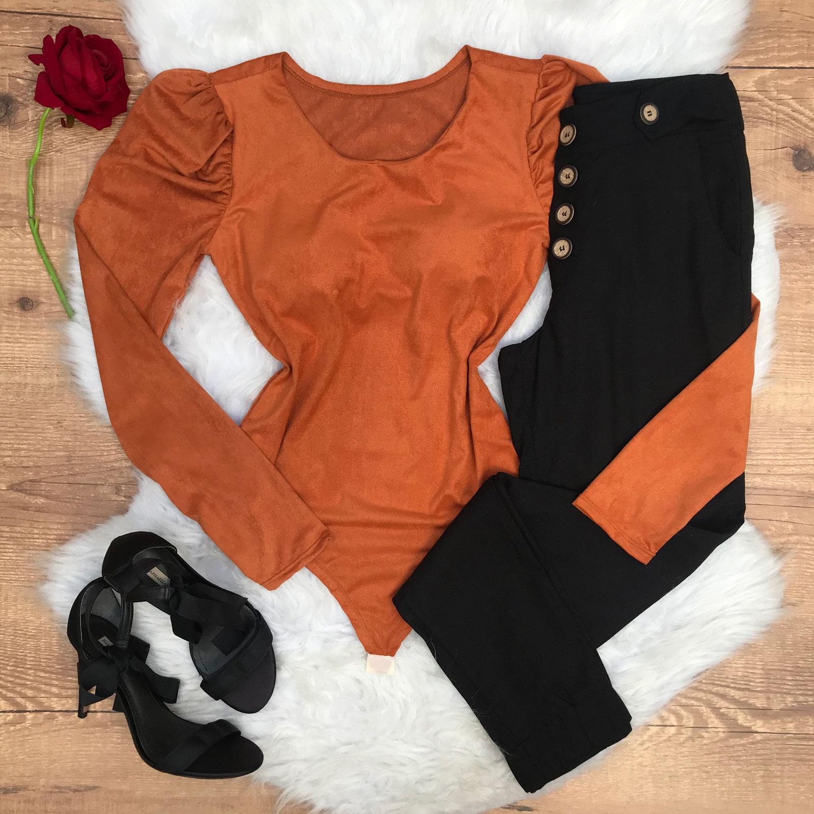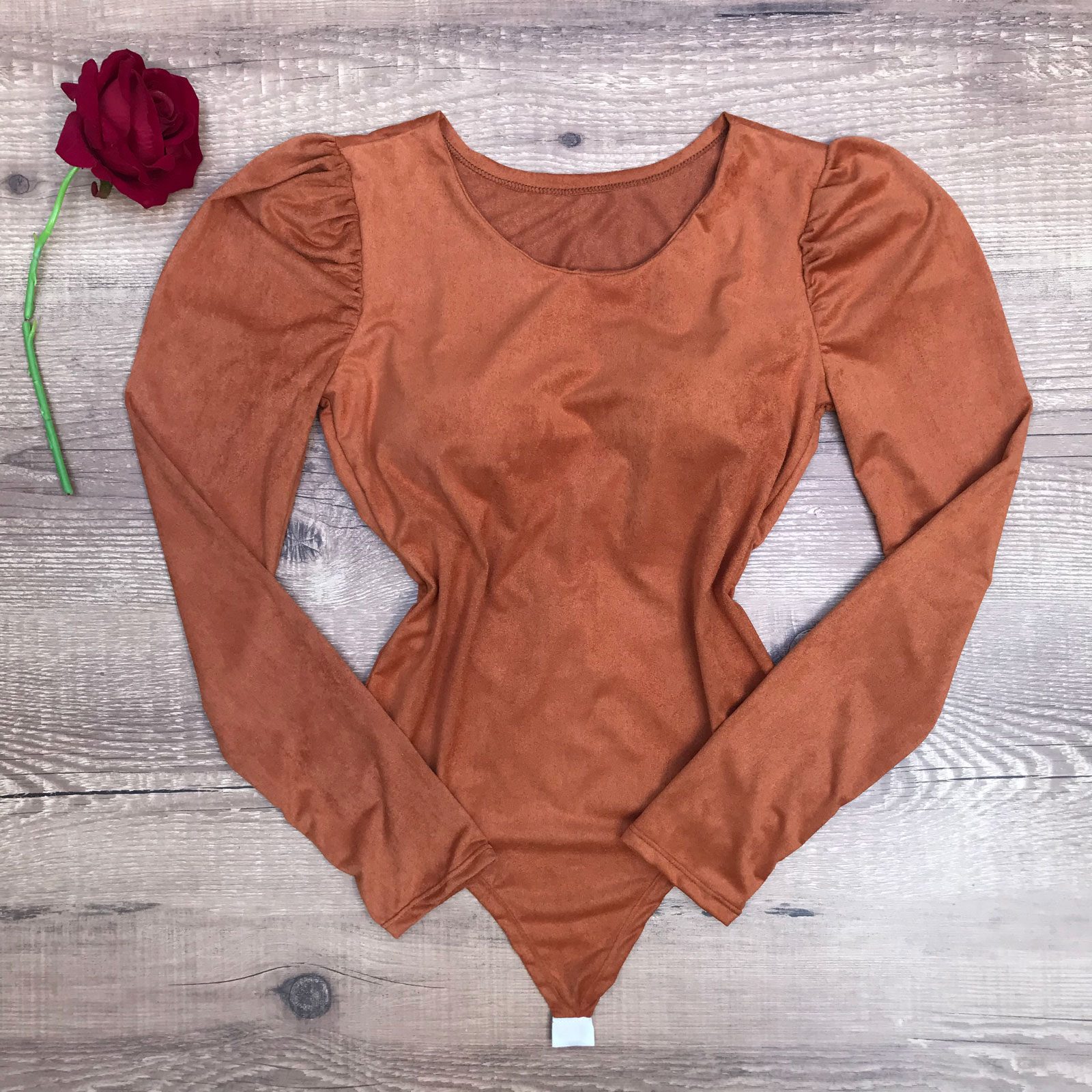 BODY COM BOJO SUEDE MANGA LONGA TERRACOTA