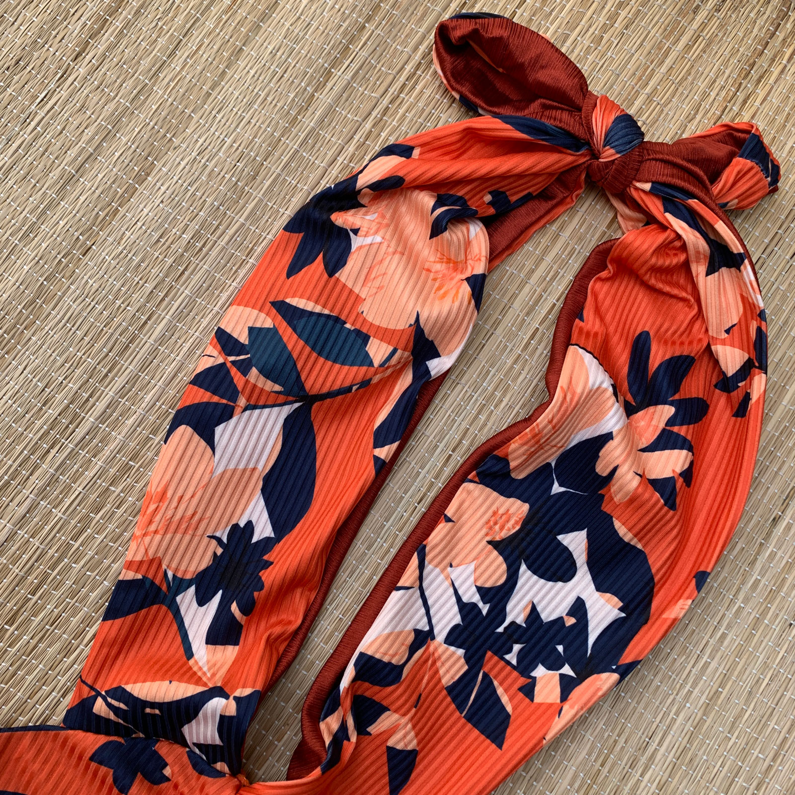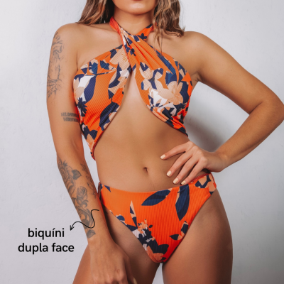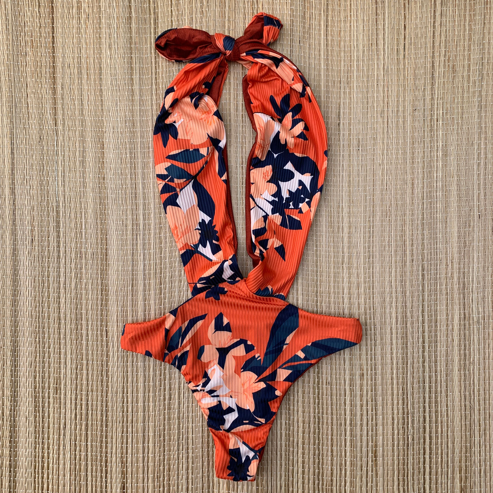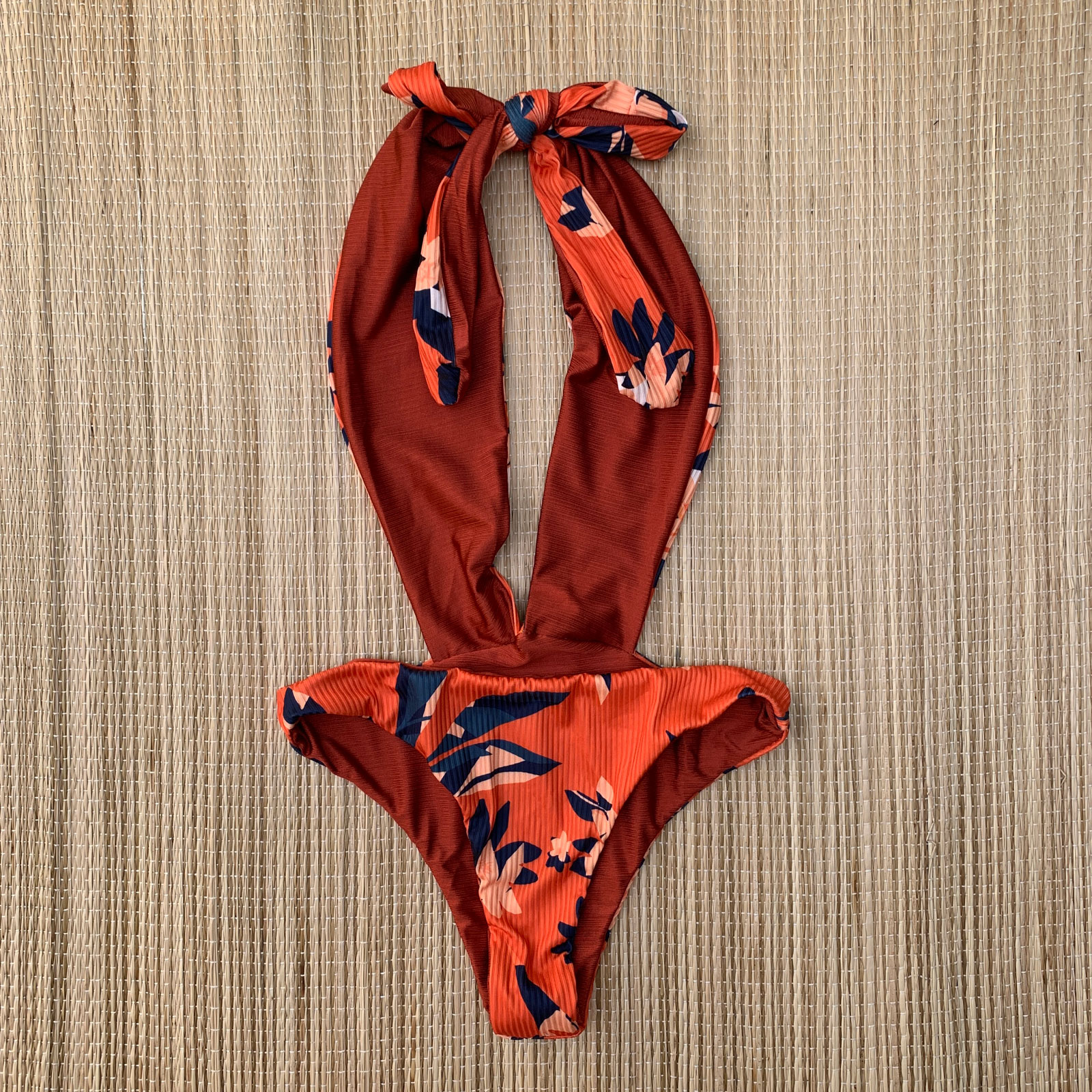 Body Maiô Dupla Face Transpassado Floral Terracota