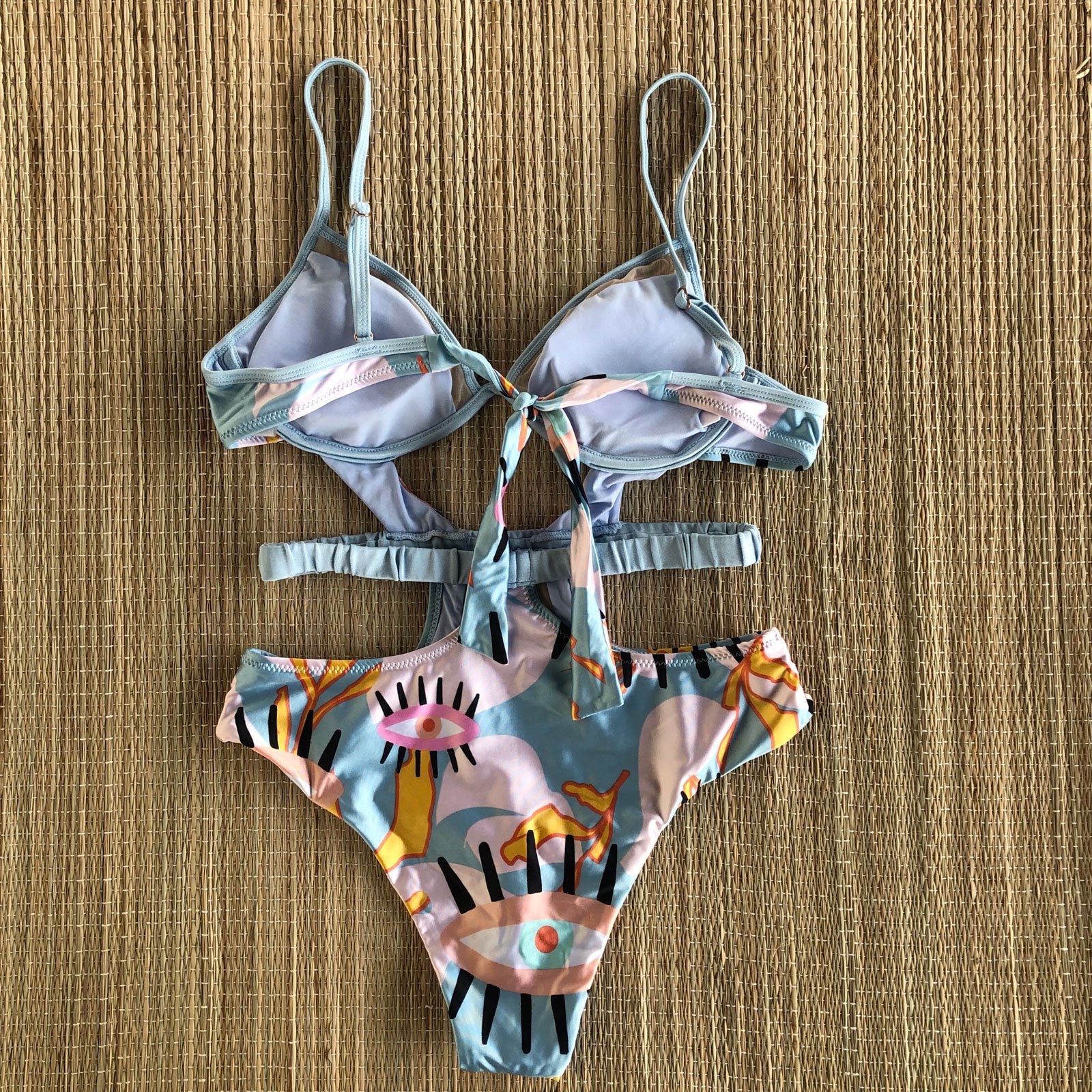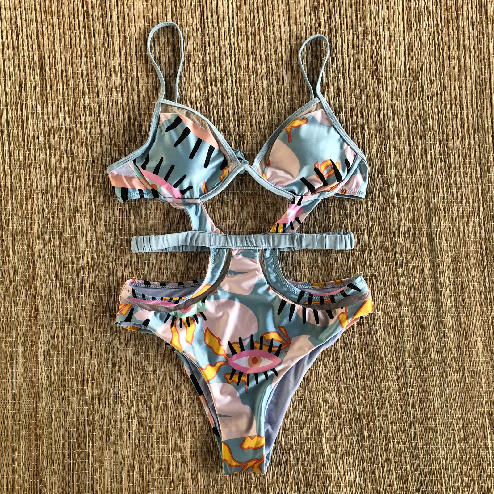 Body Maiô Shine Recortes – Estampa Olhos Azul Bebe