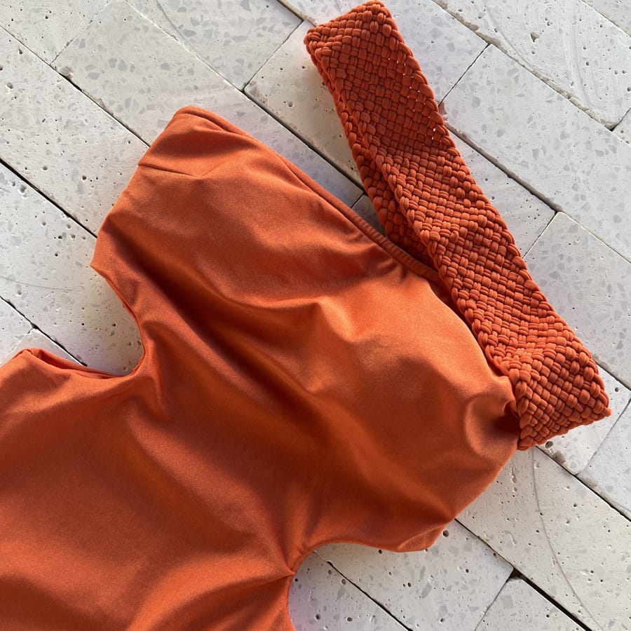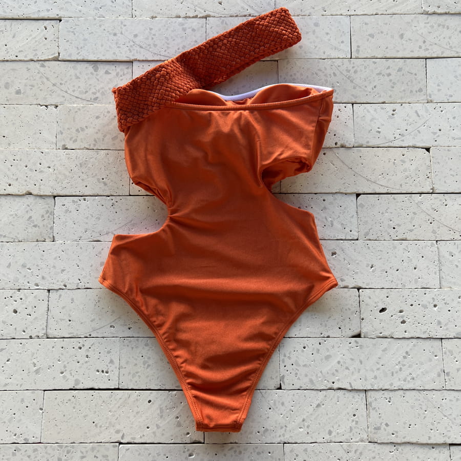 Body Maiô Um Ombro Só Abertura na Cintura – Terracota