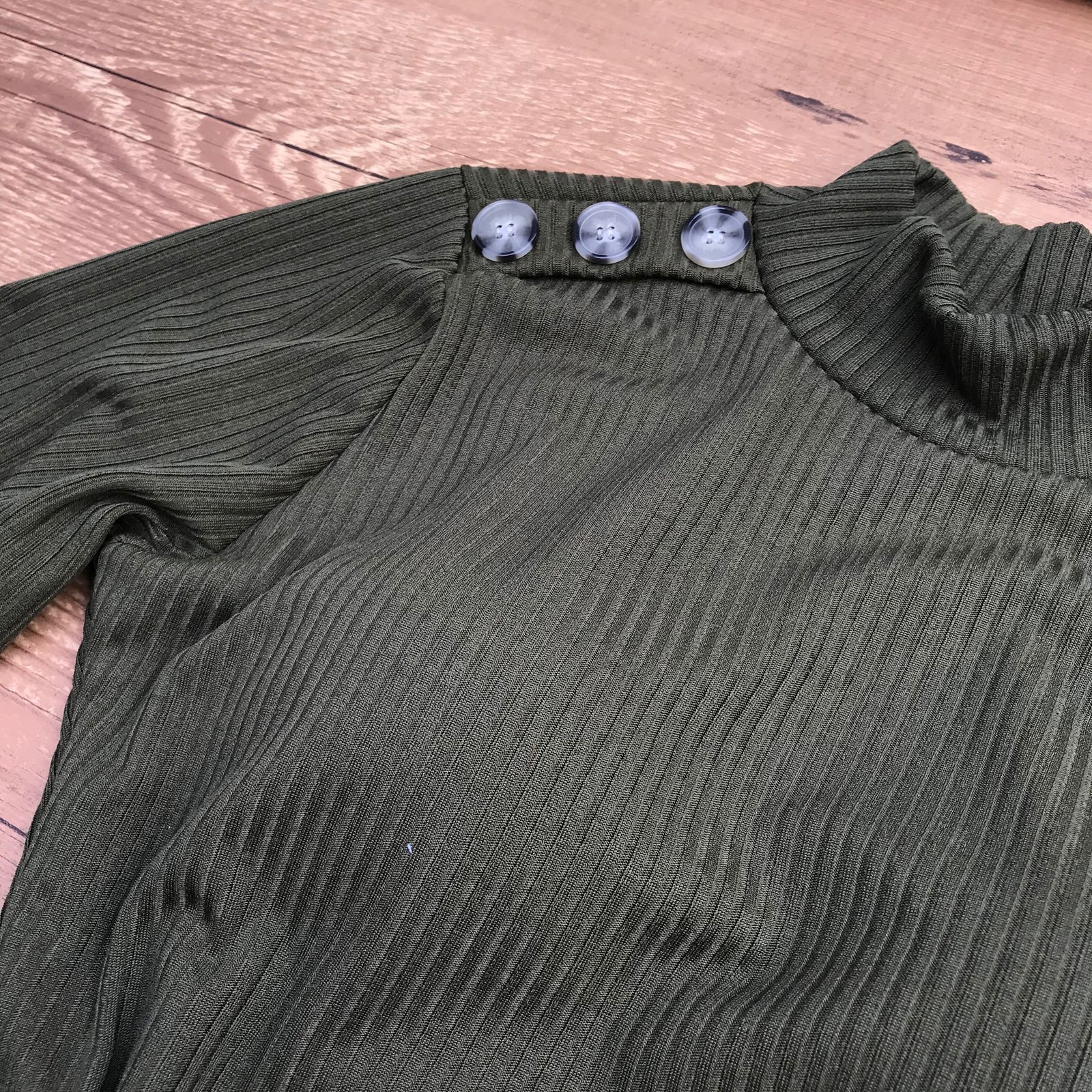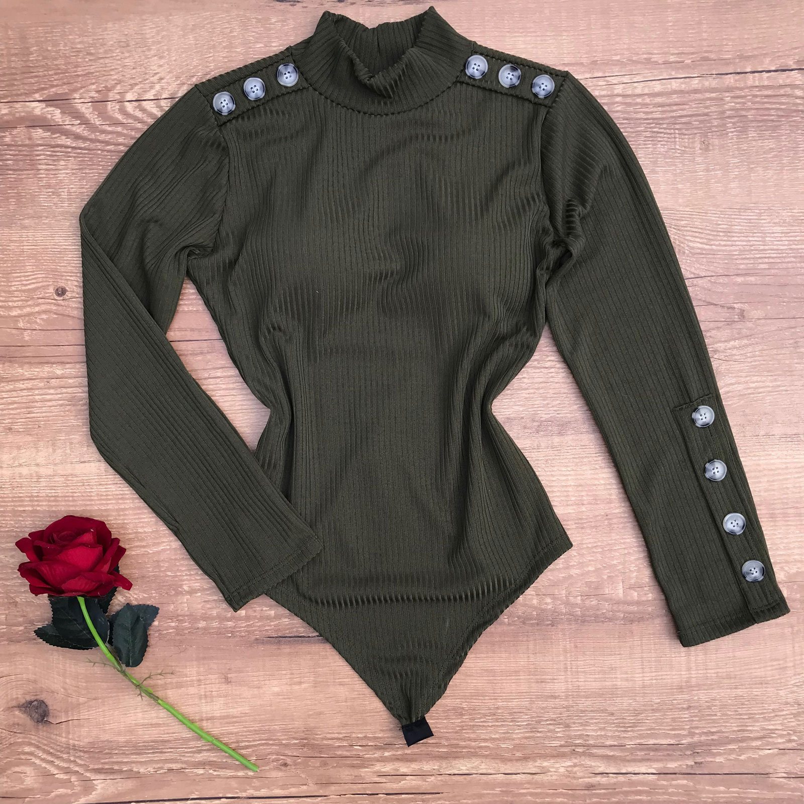 BODY MANGA LONGA CANELADO BOTÕES VERDE