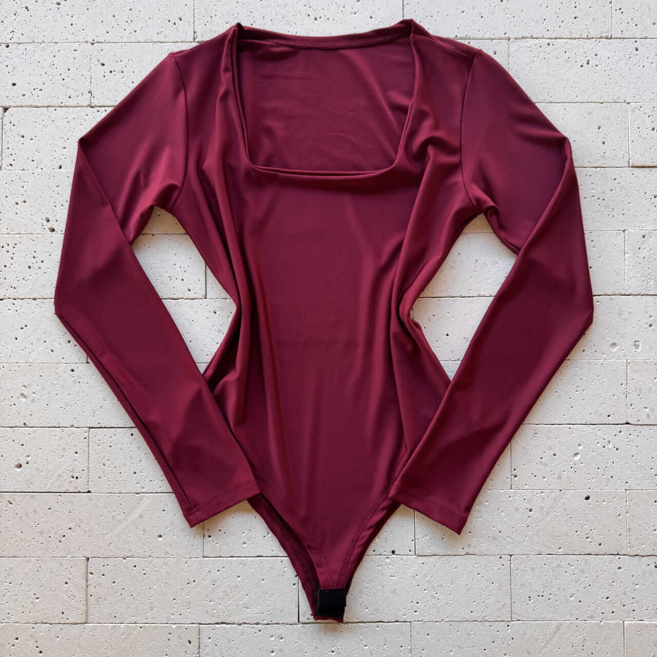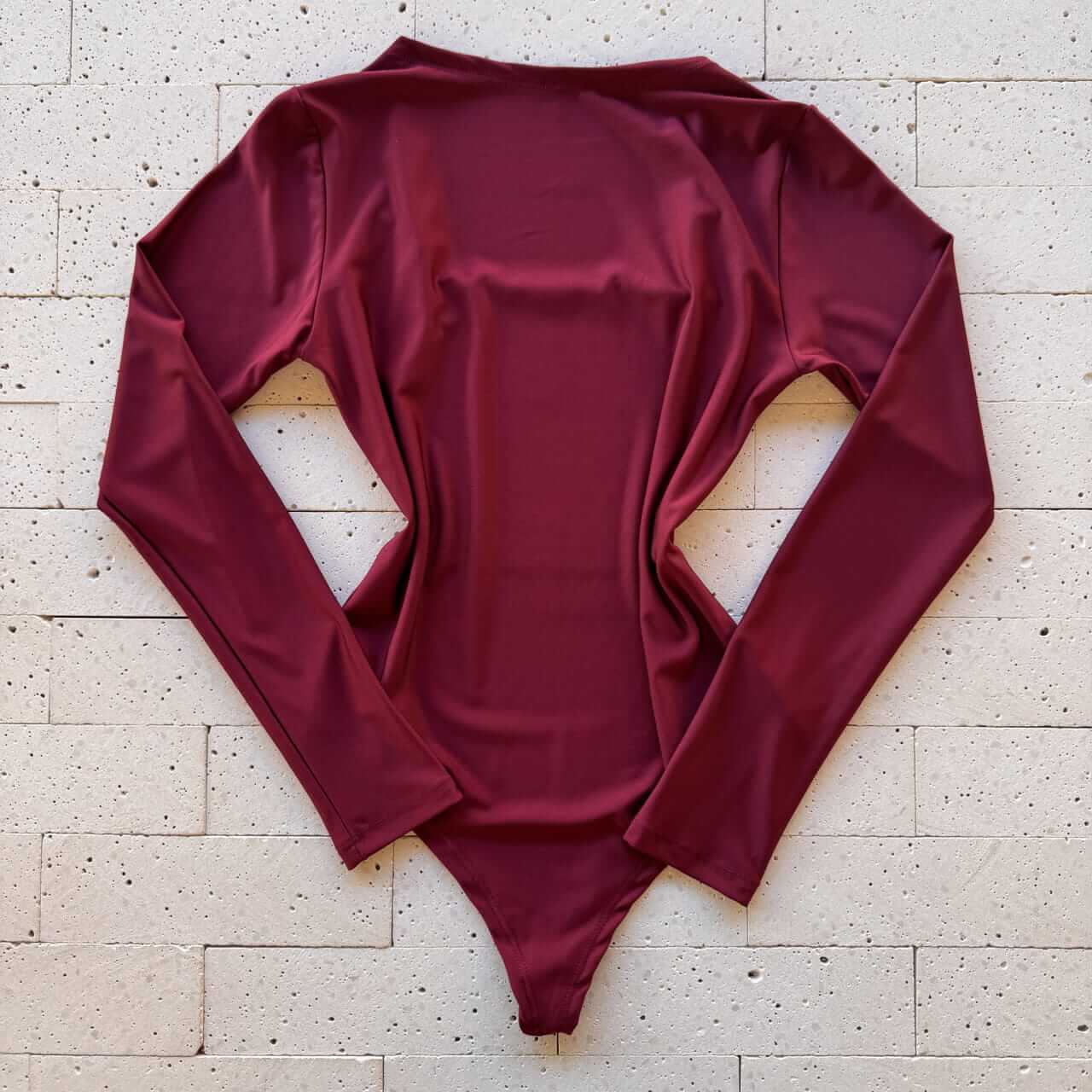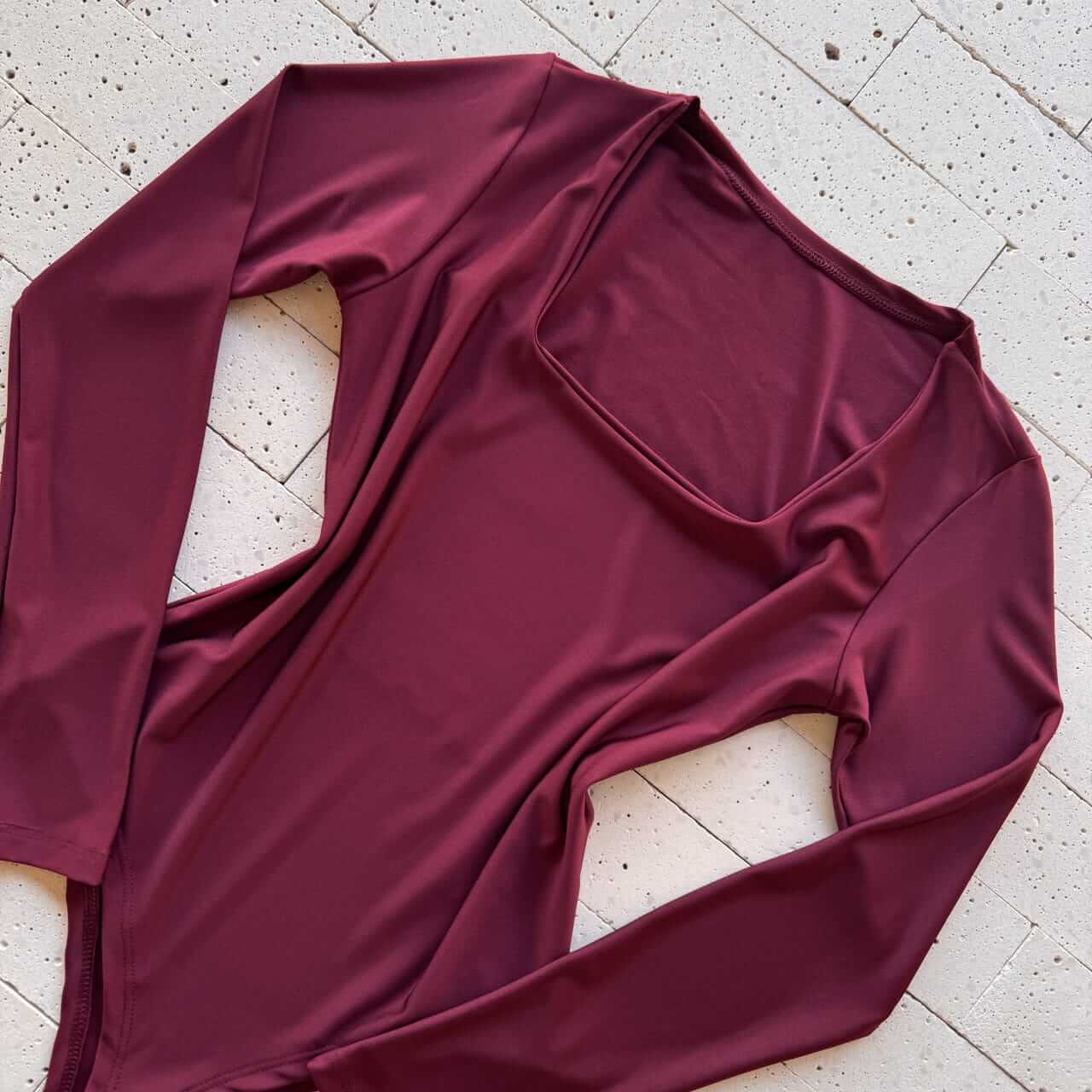 BODY MANGA LONGA DECOTE QUADRADO VINHO