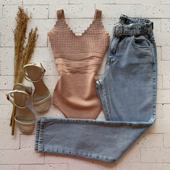 O body nude é uma peça coringa para diversas ocasiões! Para um look elegante, combine com calça pantalona e scarpin. Já para um visual casual sofisticado, aposte em jeans de cintura alta e sandálias delicadas. O tom neutro permite combinações fáceis com diversas cores e estilos.