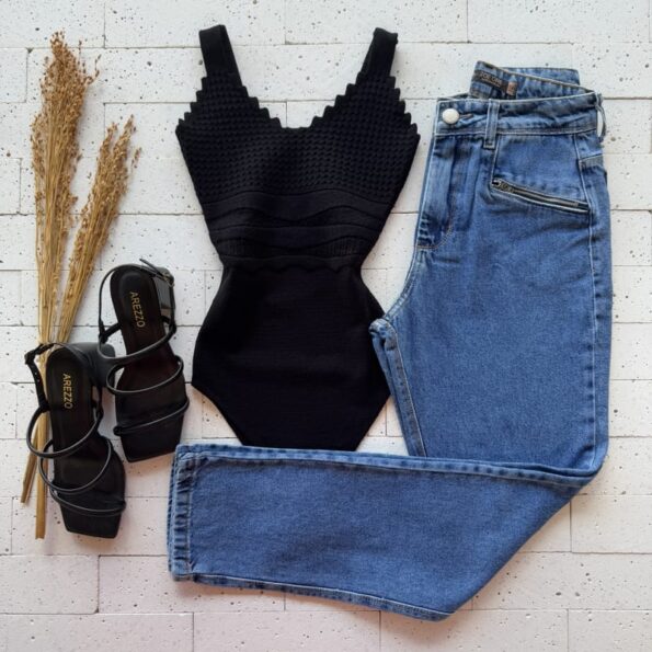BODY MODAL BUSTO DETALHADO COM FURINHOS PRETO – Sofisticação e Conforto