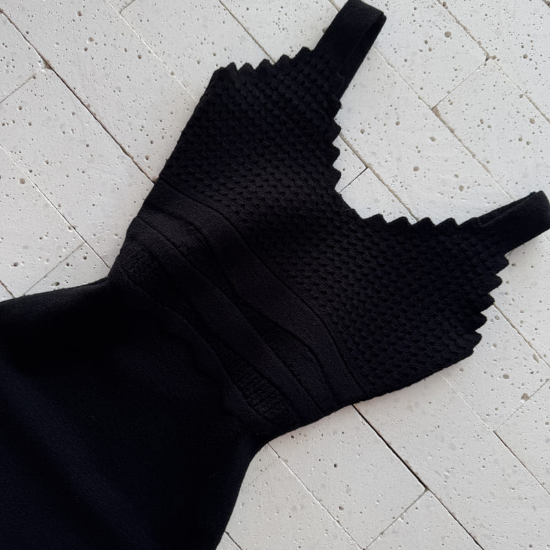- Busto texturizado com detalhes de furinhos e recortes elegantes;