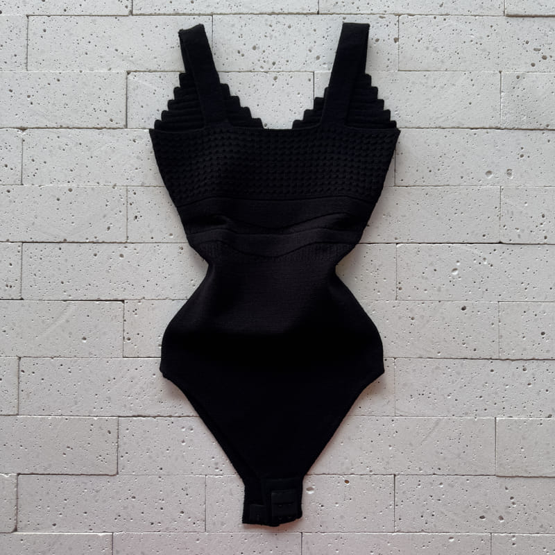 BODY MODAL BUSTO DETALHADO COM FURINHOS PRETO