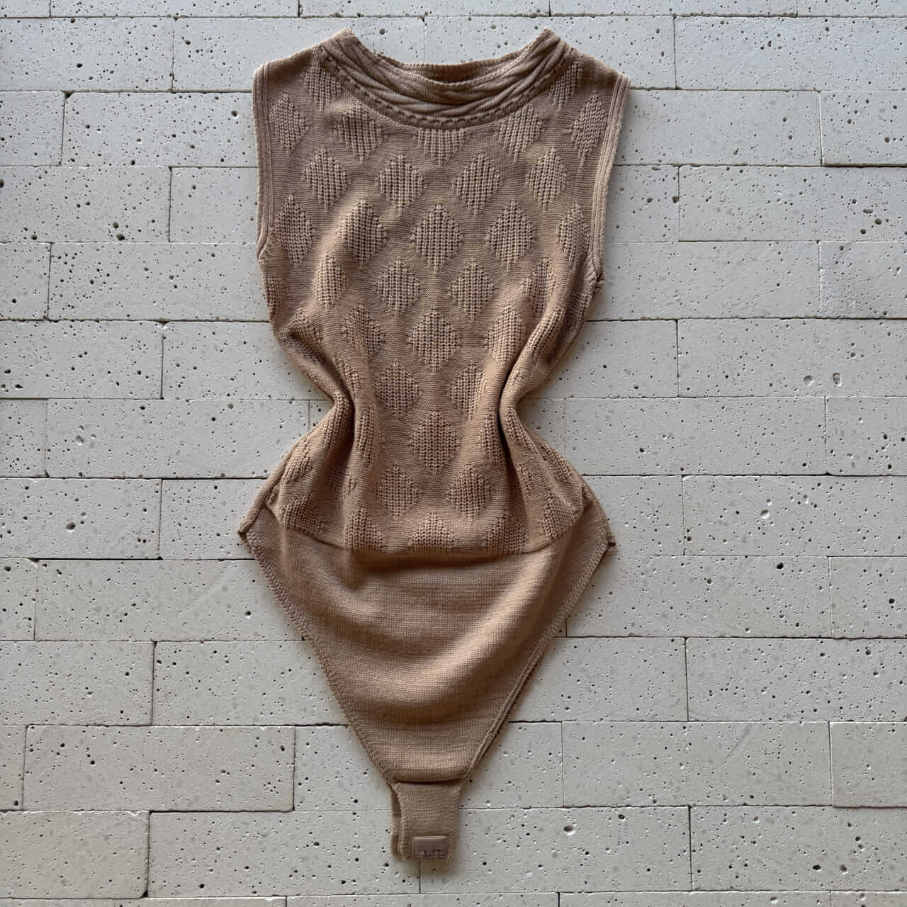 BODY MODAL LEVE QUADRADOS DETALHADOS BEGE