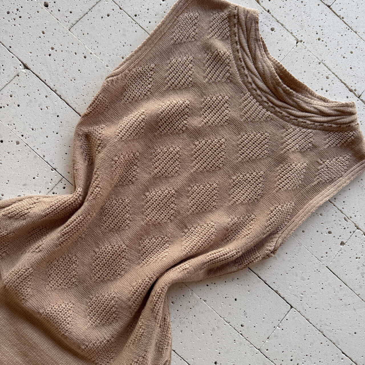 BODY MODAL LEVE QUADRADOS DETALHADOS BEGE – Elegância Neutra e Atemporal