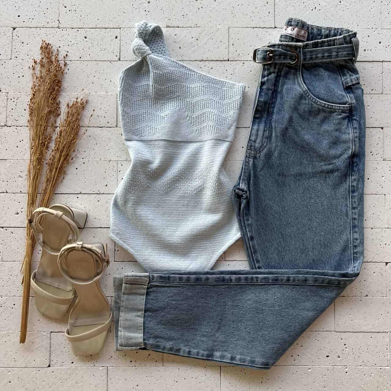 Como Usar o Body Modal Nózinho Um Ombro Só Azul Claro