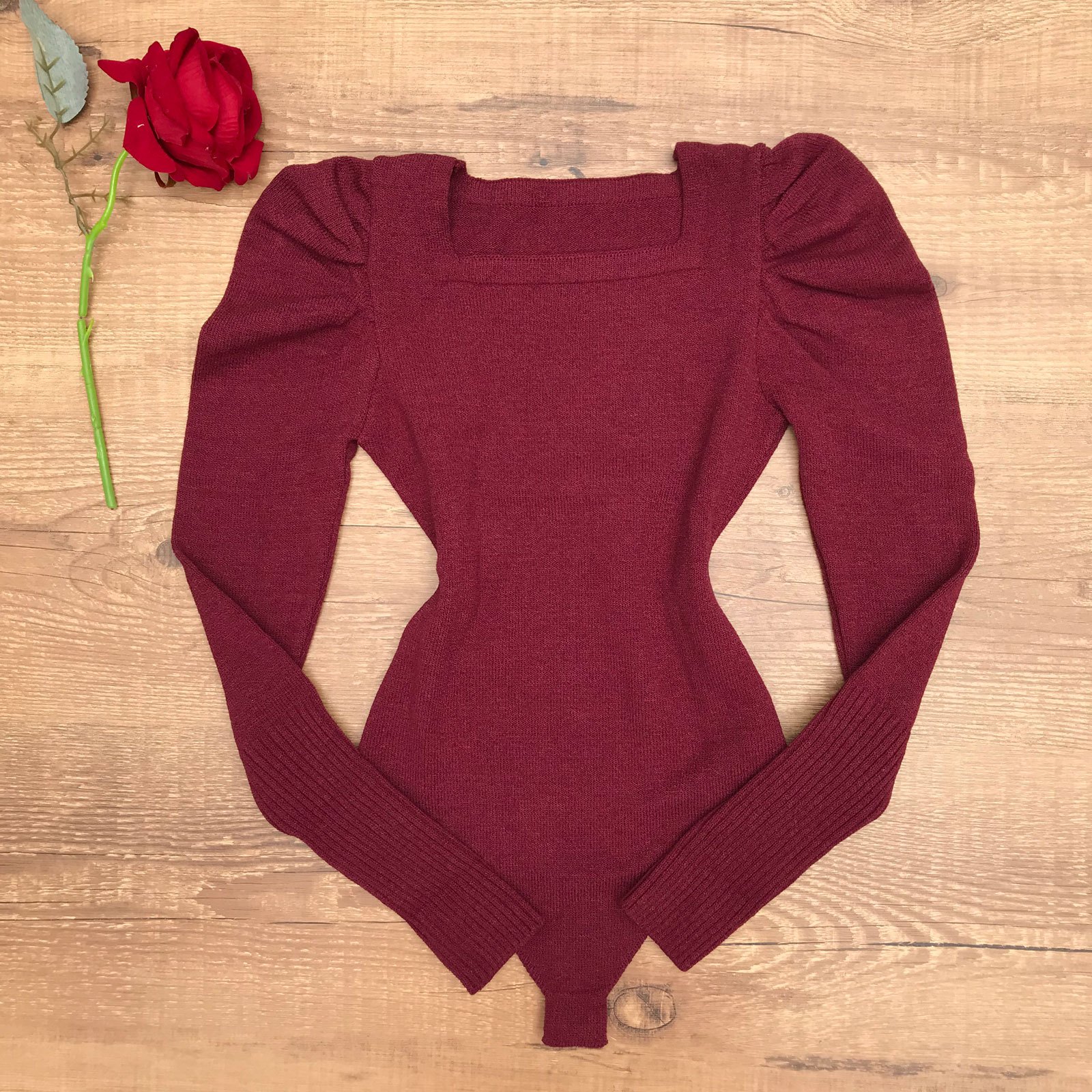 BODY TRICÔ MODAL PRINCESA MANGA LONGA MARSALA