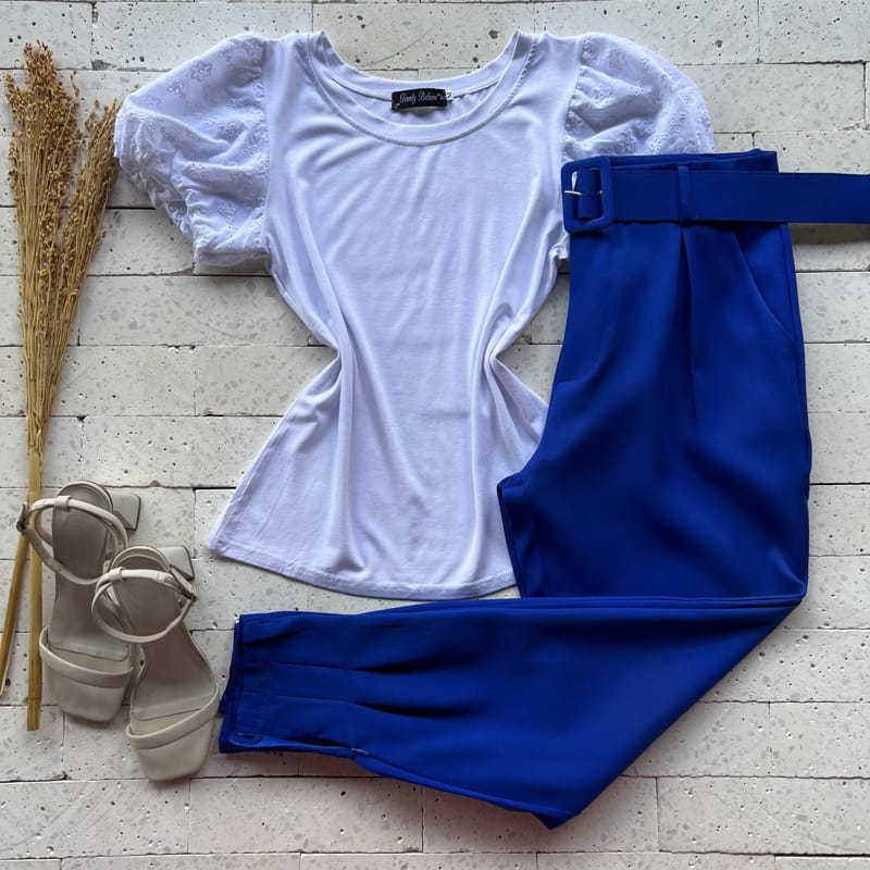 CALÇA ALFAIATARIA CENOURA COM CINTO PREMIUM AZUL BIC