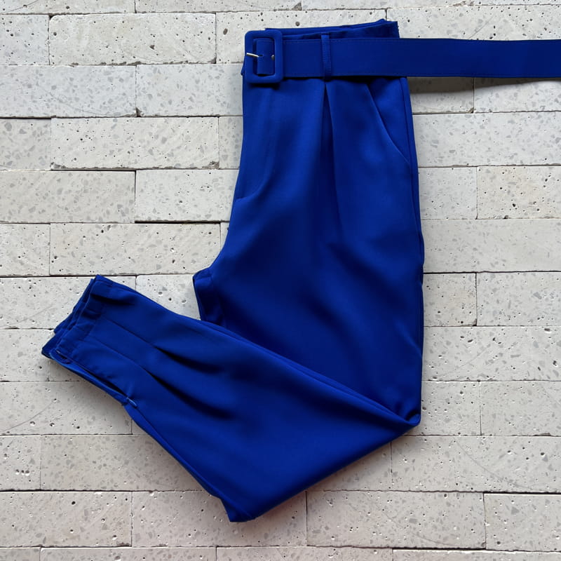 Escolha sua Calça Alfaiataria Cenoura com Cinto Premium Azul Bic com nosso PROVADOR VIRTUAL