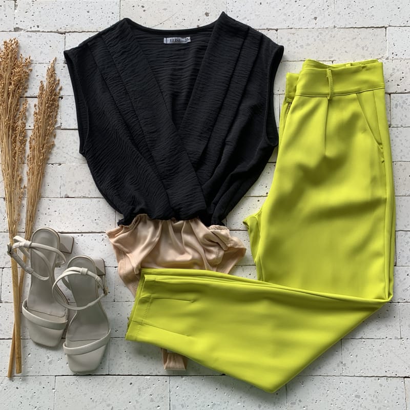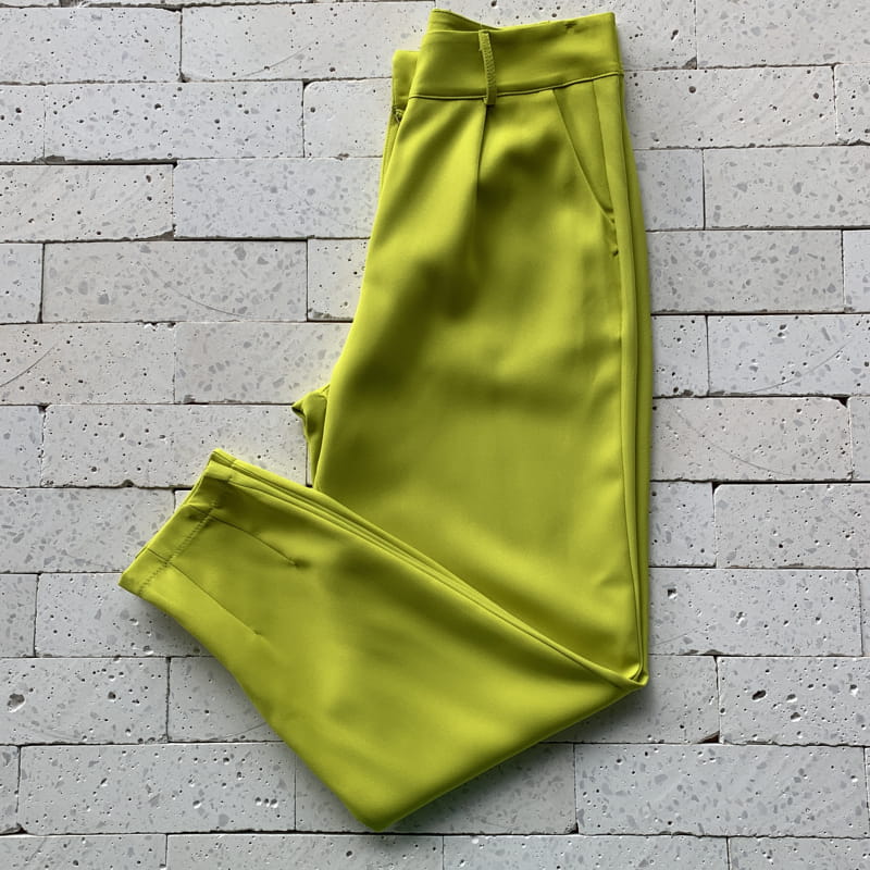 Apresentando passantes, braguilha funcional com zíper resinado e botão encapado, detalhe em pences, bolsos laterais funcionais, abertura no tornozelo com fechamento em zíper resinado funcional e detalhe em pences no tornozelo, o modelo se torna item indispensável a composições sofisticadas. Além disso, trará equilíbrio ao seu visual.