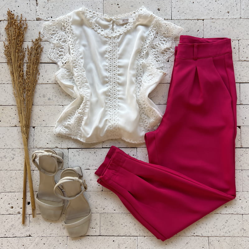 Escolha sua Calça Alfaiataria Cenoura Premium Pink com nosso PROVADOR VIRTUAL