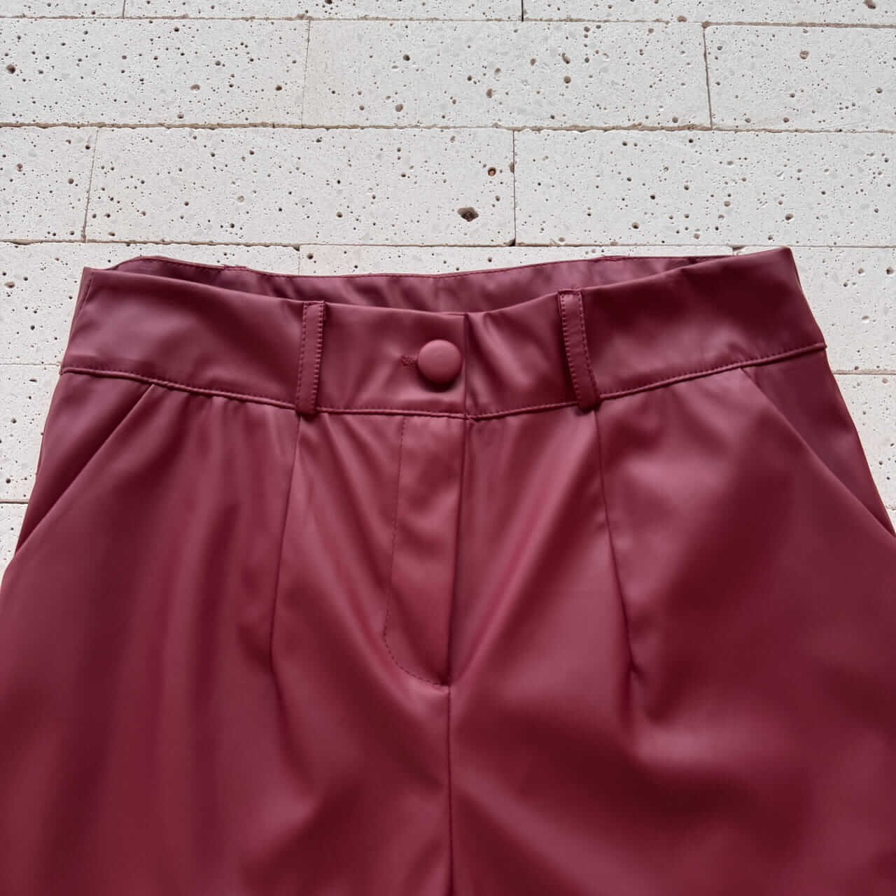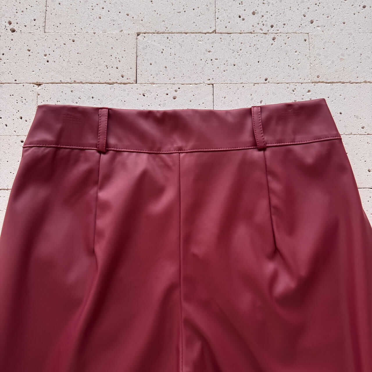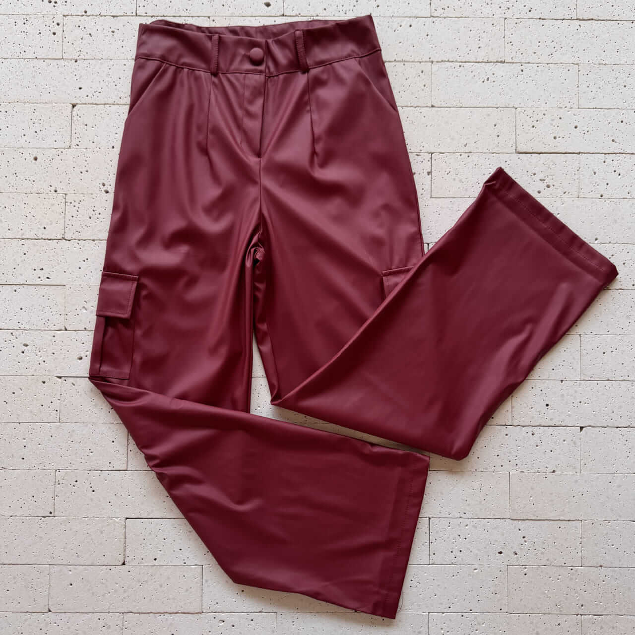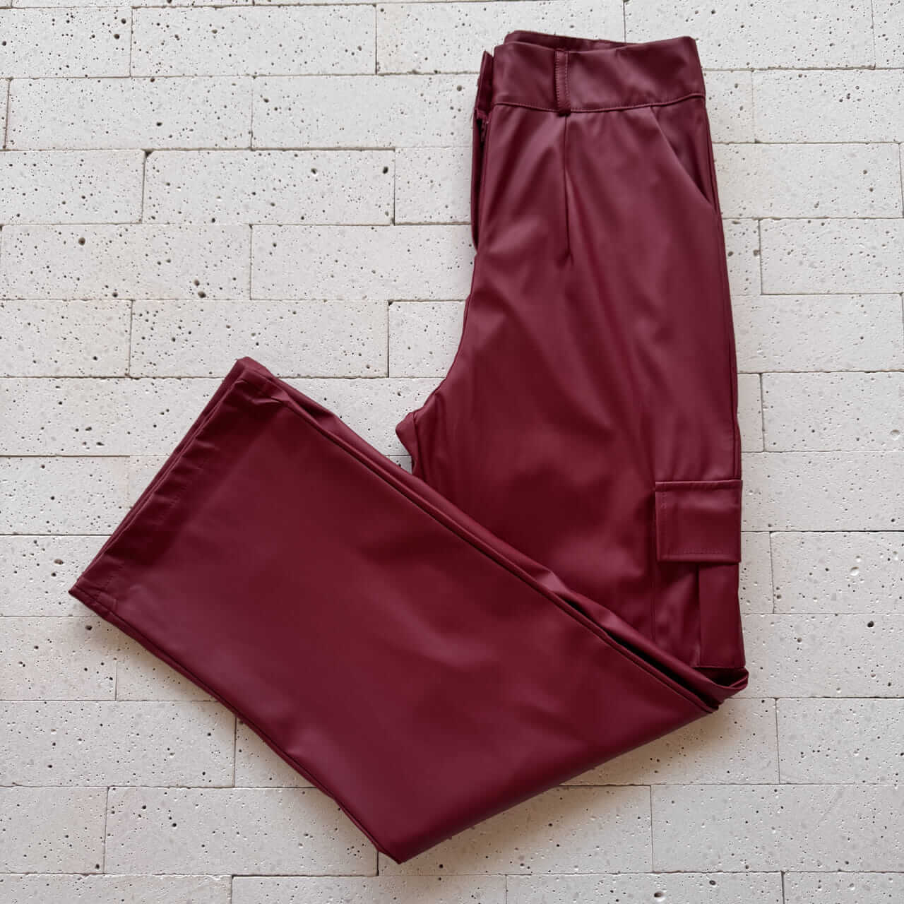 CALÇA CARGO DE COURO SINTÉTICO WIDE LEG MARSALA