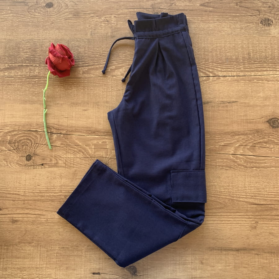 CALÇA CARGO LINHO COM AMARRAÇÃO MARINHO