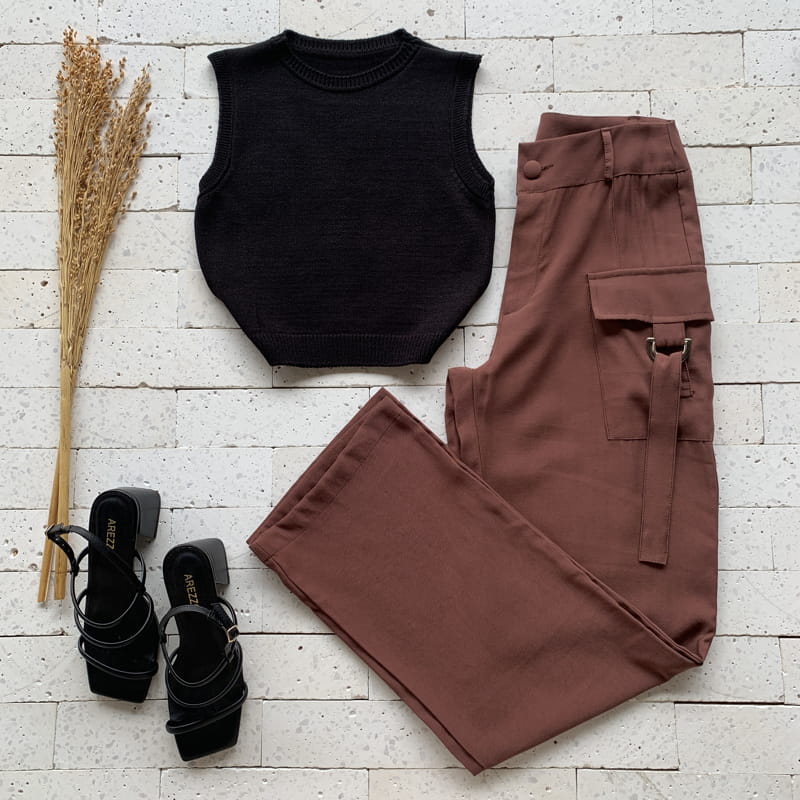 Escolha sua Calça Cargo Pantalona Luxo Marrom com nosso PROVADOR VIRTUAL