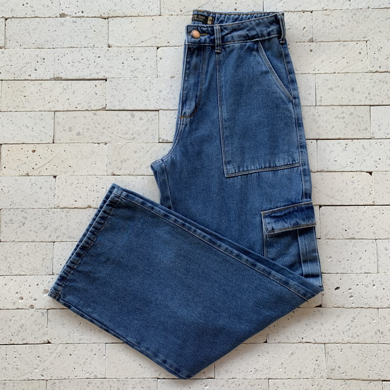CALÇA CARGO WIDE LEG JEANS PREMIUM – Dondoca