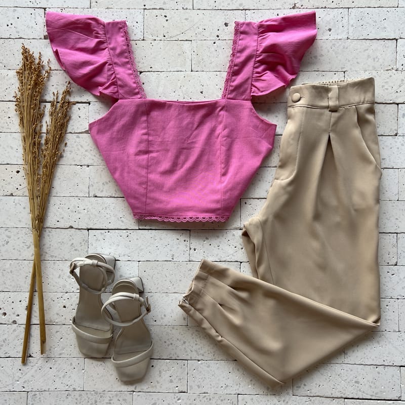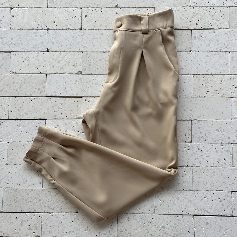 Escolha sua Calça Clochard Alfaiataria Cenoura Premium Bege com nosso PROVADOR VIRTUAL