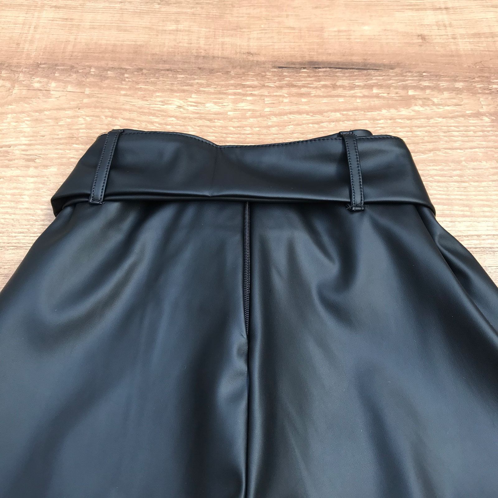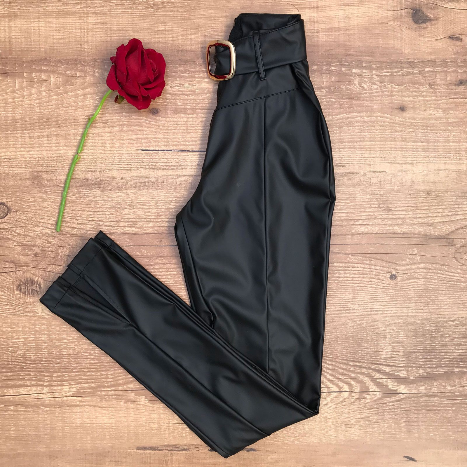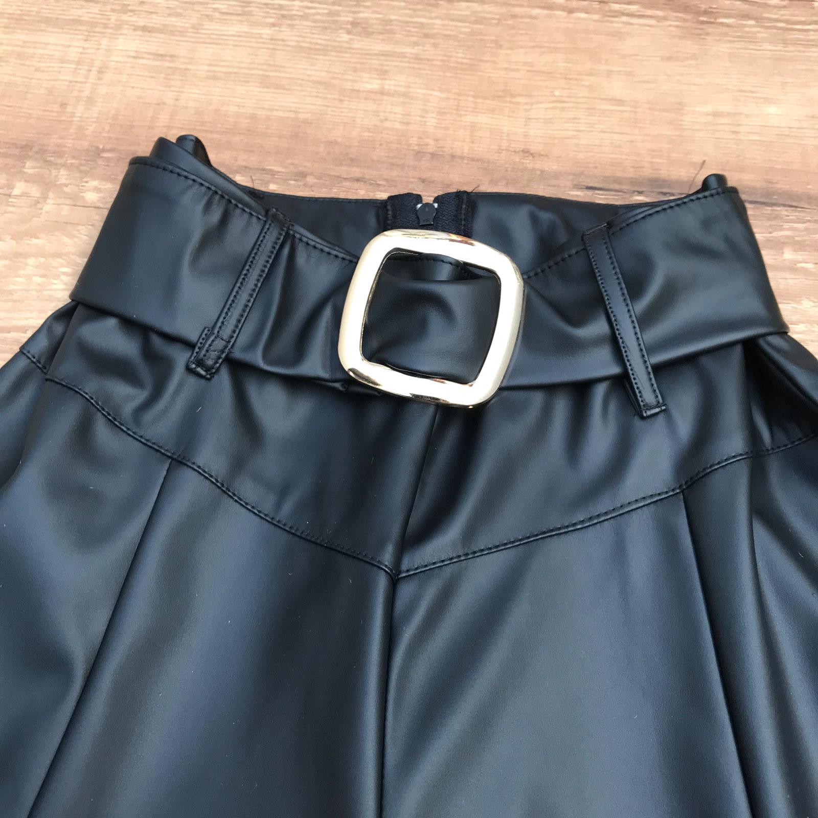 CALÇA COURO FAKE ABERTURA NA BARRA PRETA
