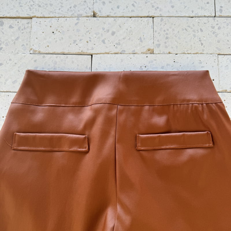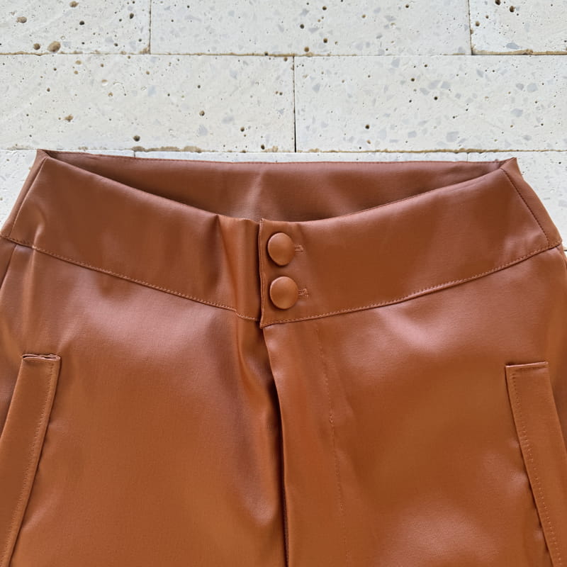CALÇA DE COURO SINTÉTICO COM BOLSO FAKE MARROM