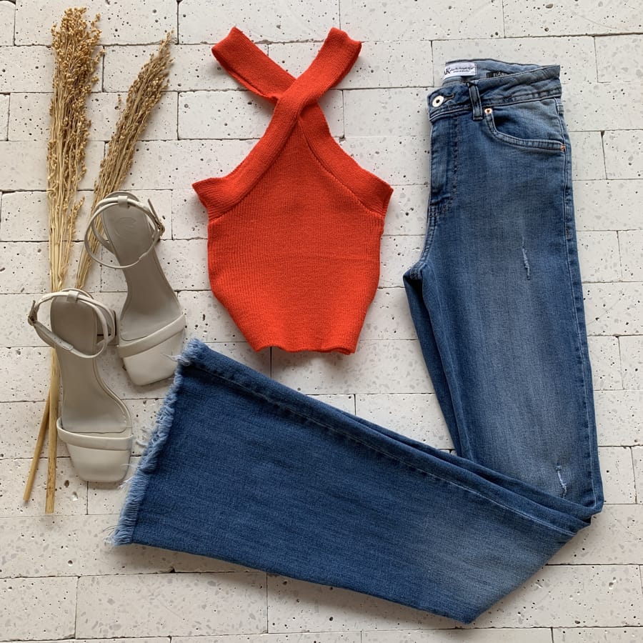 Como Usar a CALÇA FLARE JEANS COM BARRA E DETALHE DESFIADO