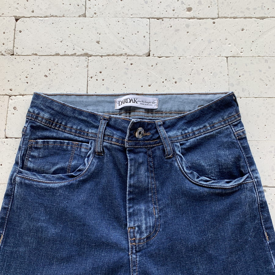 Os bolsos frontais estilo americano funcionais juntamente com os bolsos nas costas estilo filigrana funcionais aumentam a usabilidade da peça. A lavagem marmorizada acresce um design moderno e jovial.