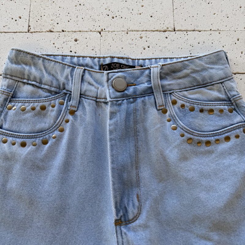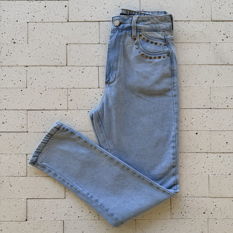 CALÇA JEANS PREMIUM DETALHE TACHINHAS NOS BOLSOS CLARA