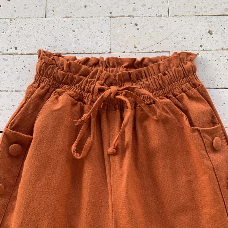 CALÇA LINHO CLOCHARD COM BOTÕES LUXO TELHA