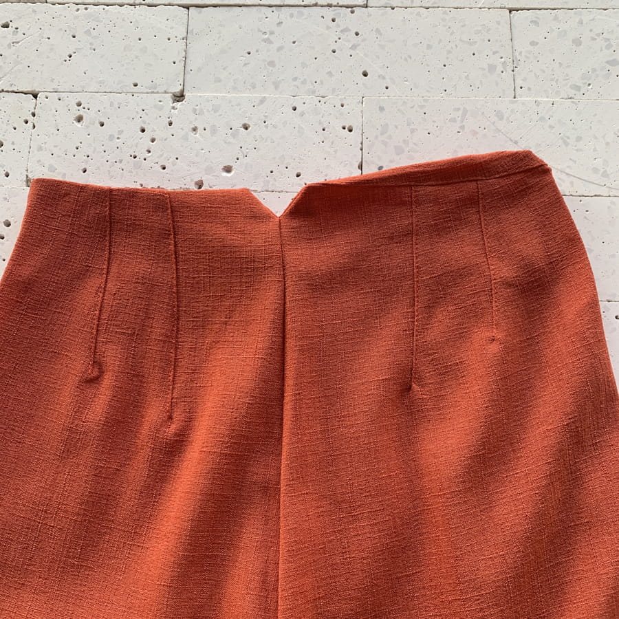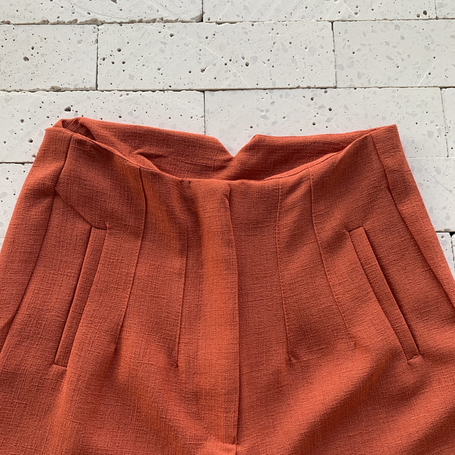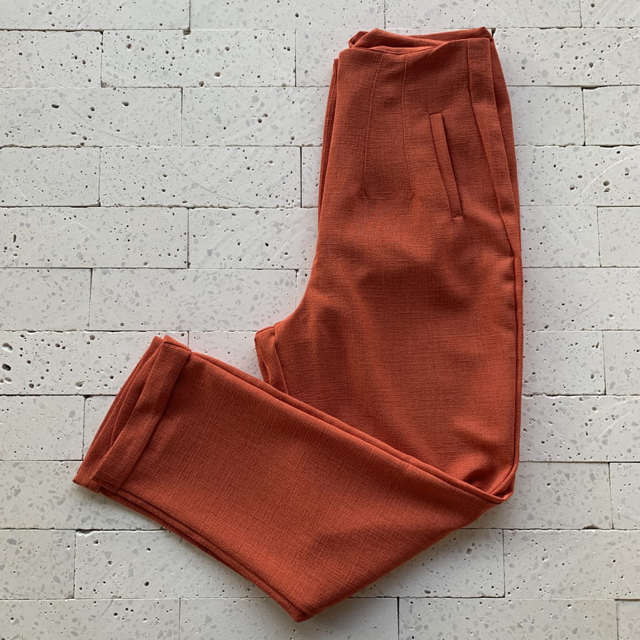 CALÇA LINHO RÚSTICO SLIM COM PENCES TELHA
