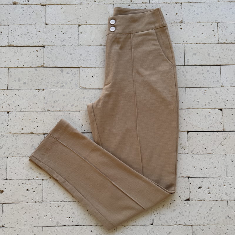 CALÇA LINHO SLIM COM VINCO DOIS BOTÕES NUDE