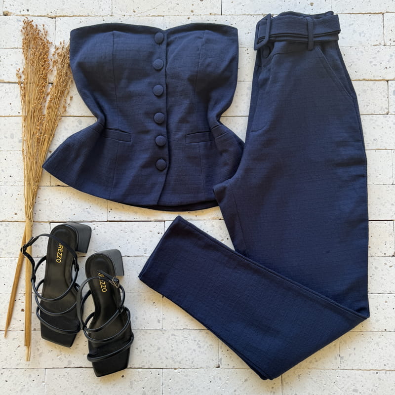 Escolha sua Calça Linho Trabalhado com Cinto Fivela Encapada Marinho com nosso PROVADOR VIRTUAL