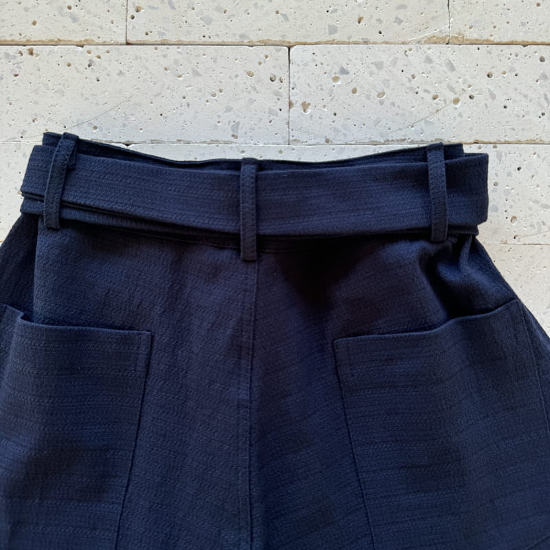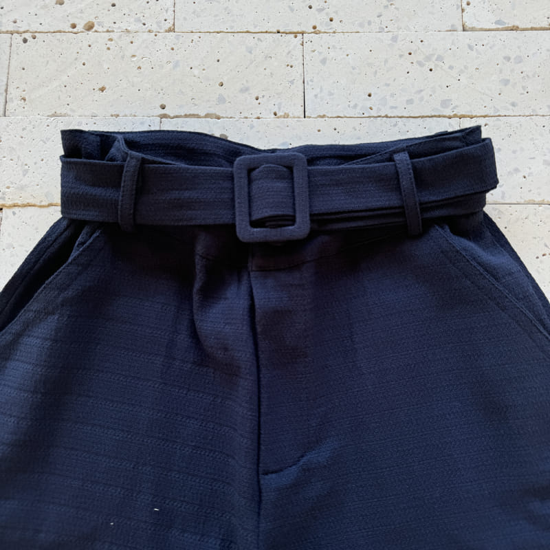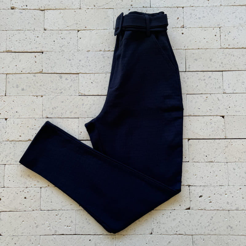 CALÇA LINHO TRABALHADO COM CINTO FIVELA ENCAPADA MARINHO