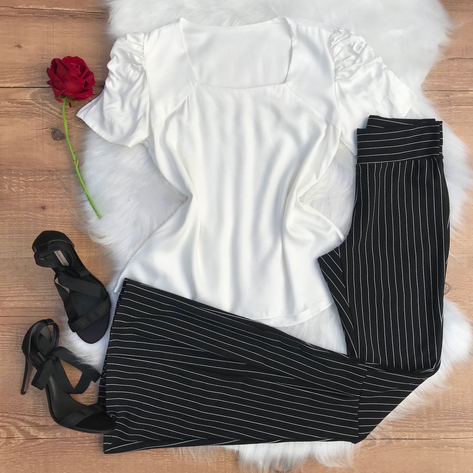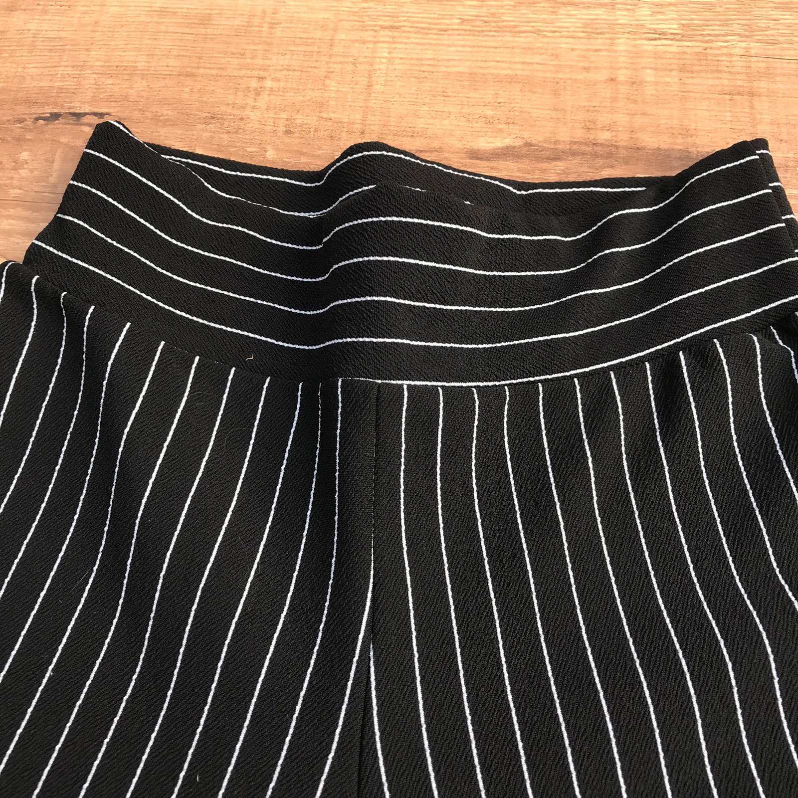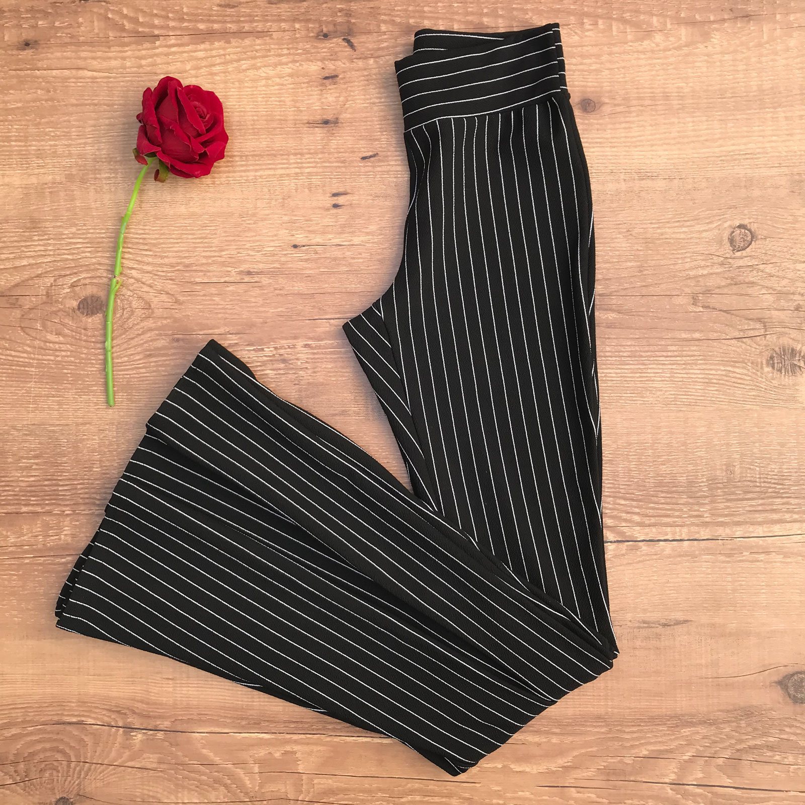 CALÇA MAXI FLARE TECIDO PRETA LISTRADA
