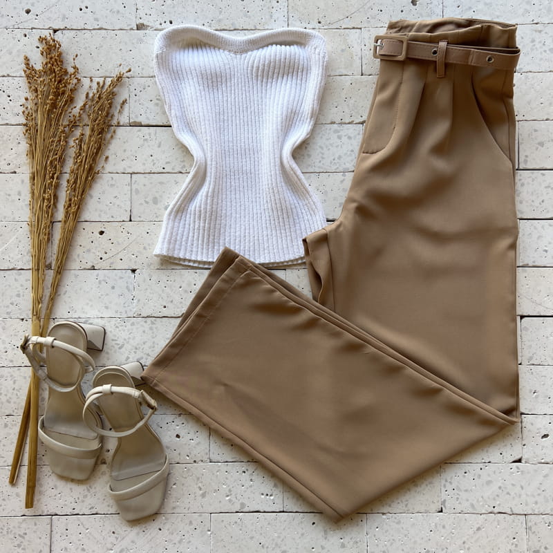 Escolha sua Calça Pantalona Alfaiataria com Vinco Luxo Nude com nosso PROVADOR VIRTUAL