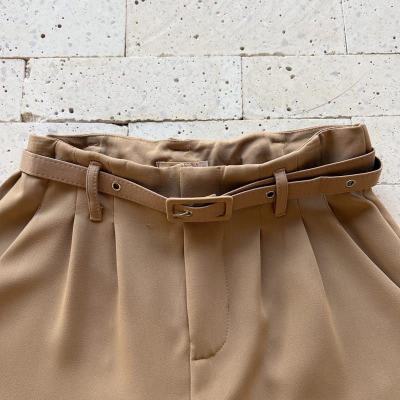 CALÇA PANTALONA ALFAIATARIA COM VINCO LUXO NUDE