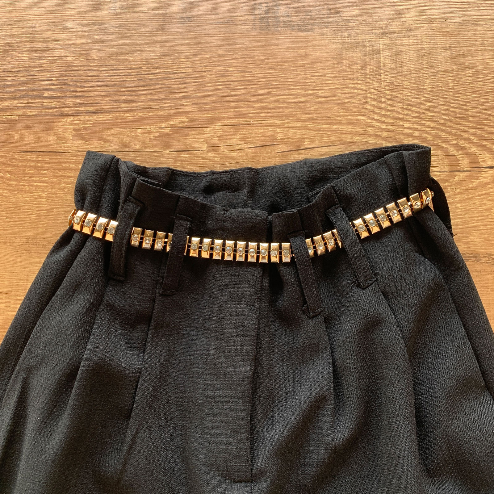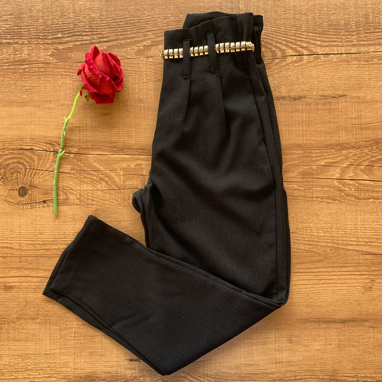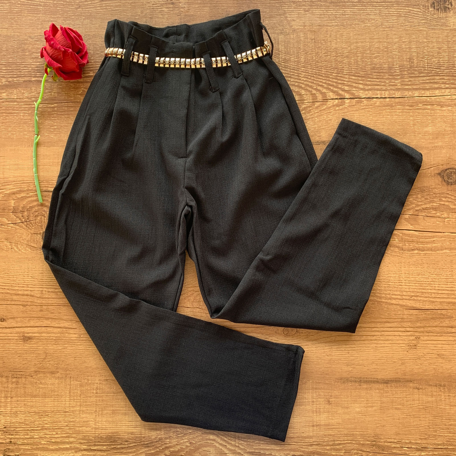 CALÇA SLIM COM CINTO DOURADO STRASS PRETA
