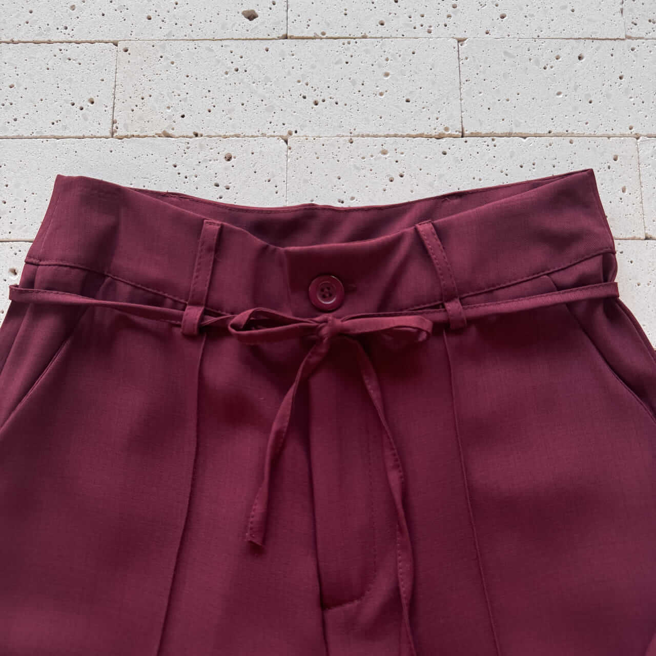 CALÇA SOCIAL DETALHE VINCO E CORDÃO MARSALA