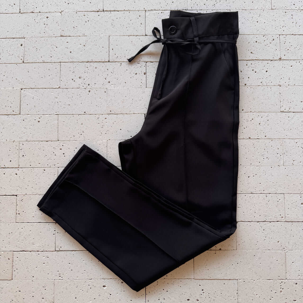Calça Social Detalhe Vinco e Cordão Preta – Alfaiataria Moderna com Conforto